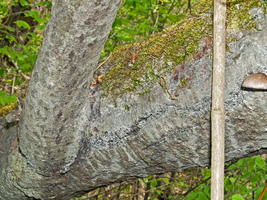 An diesem Totholz wuchsen seltene Pilze und zur exakten Dokumentation wäre die Baumart überaus hilfreich,