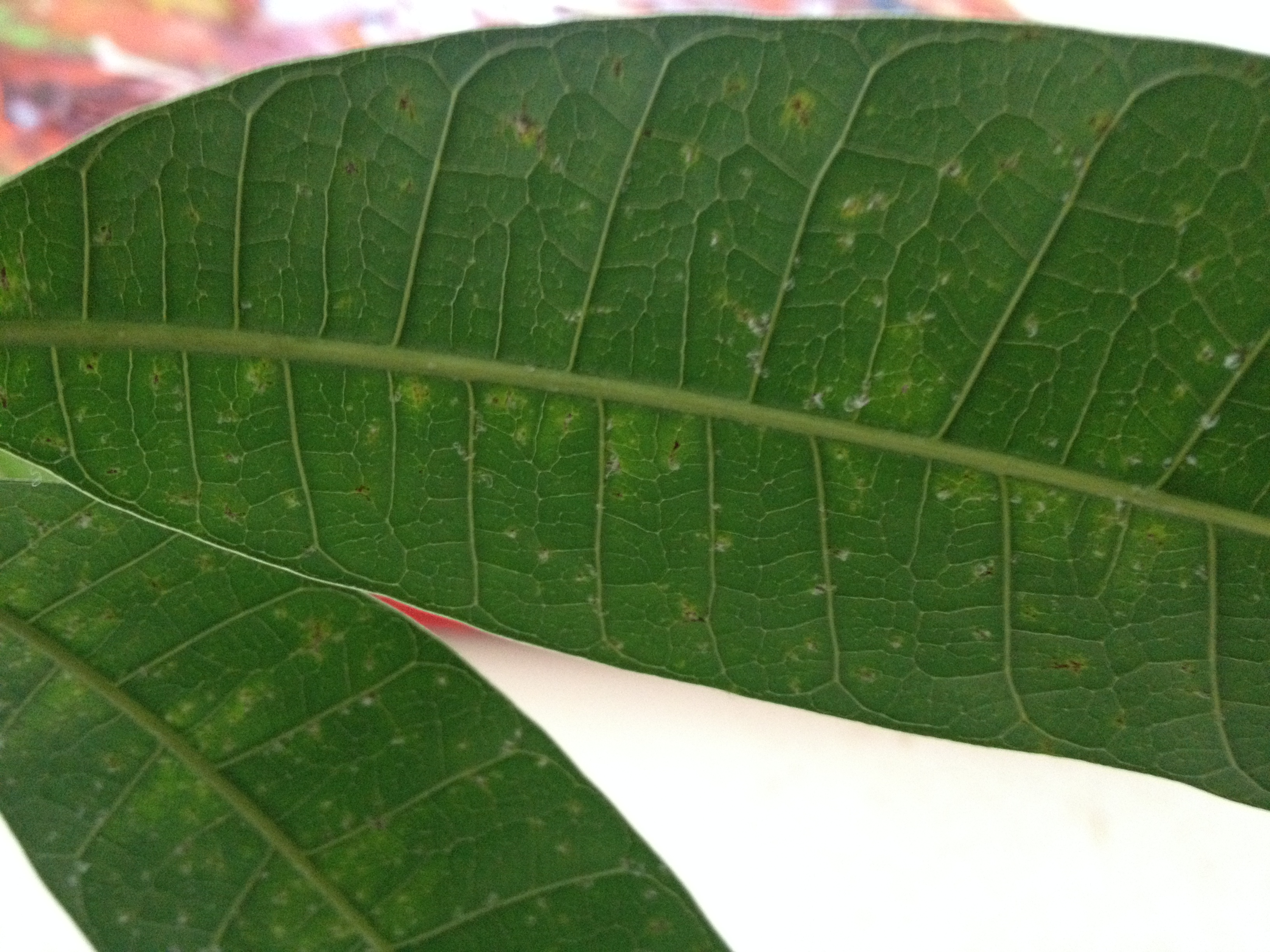 komische schwarz-weißliche Punkte an der Unterseite der Blätter. Der Staub bleibt an ihnen hängen, da sie klebrig sind.