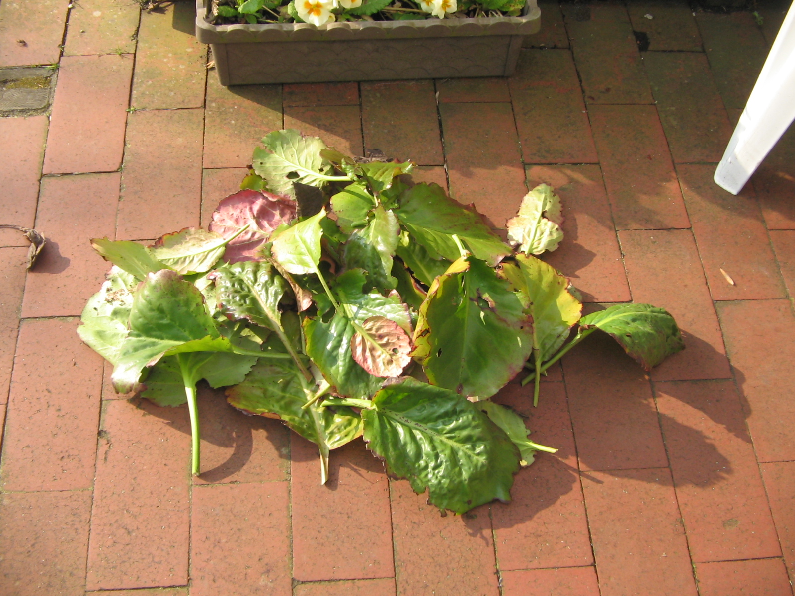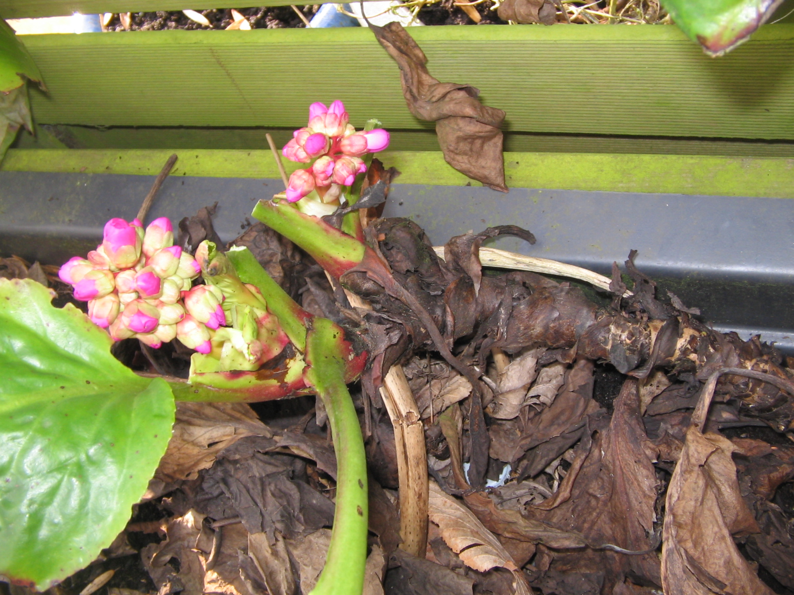 Bei mir wächst seit ca. 8 Jahren in einem Kasten neben der Haustür in fast völligem Schatten eine Bergenie (Riesensteinbrech). Sie blüht sehr schön und reichlich, wird aber wegen der immer länger werdenden kahlen Stängel auch immer unansehnlicher.