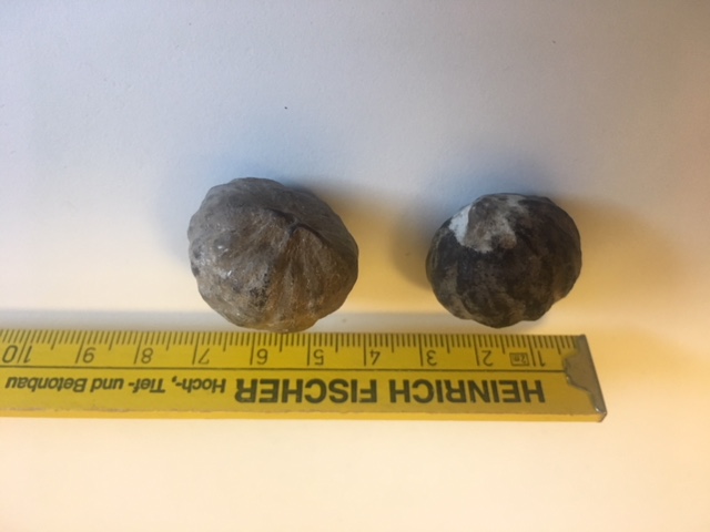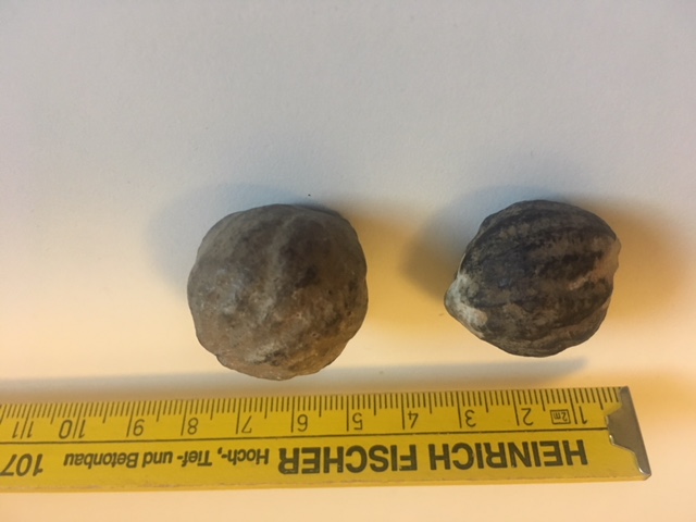 Sie sind wirklich sehr hart, härter als Walnüsse allerdings etwas kleiner. Grau/schawarz von der Farbe her.