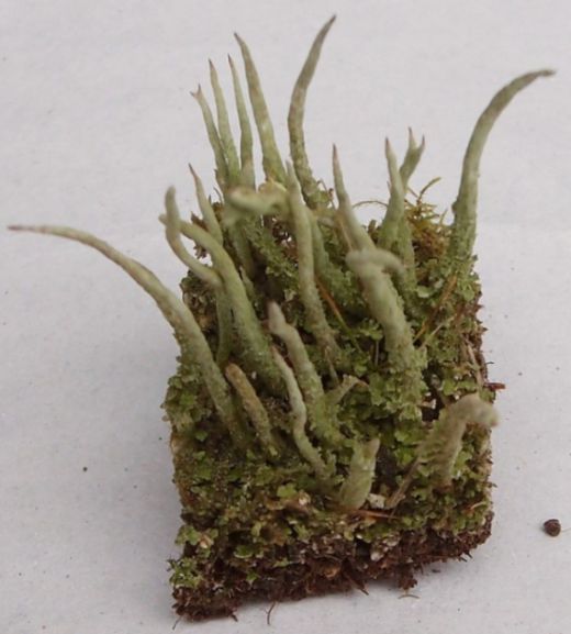 Es sieht hellgrün aus, Länge: etwa 1-2 cm lange "Stiele", scheint auf Moos-Untergrund zu wachsen.