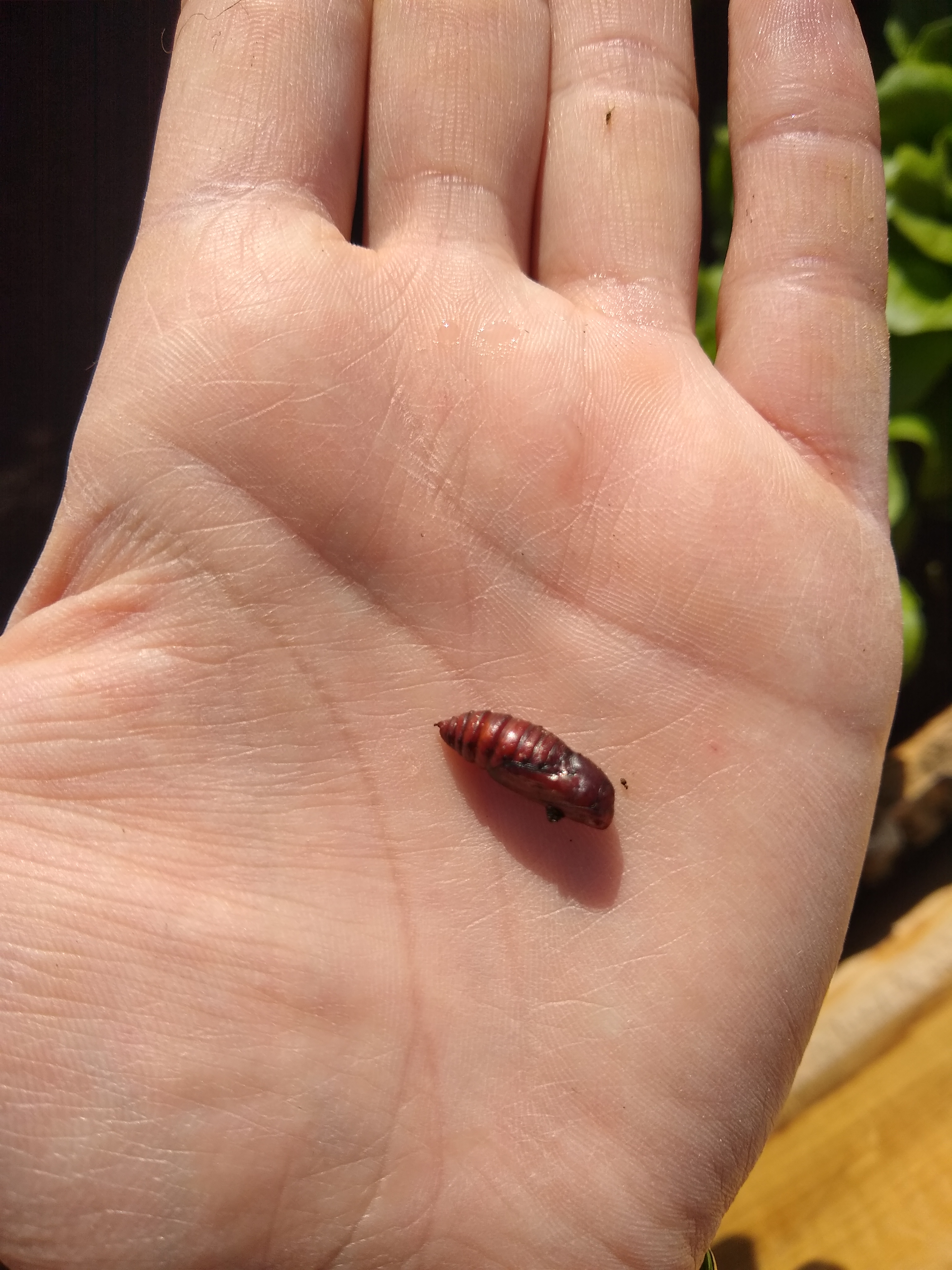 Aus meinem Kopfsalat im Hochbeet ist heute folgendes Tierchen (?) gekullert. Es war ziemlich hart, ich hab's auf dem Beet entfernt und im Unkraut abgelegt.