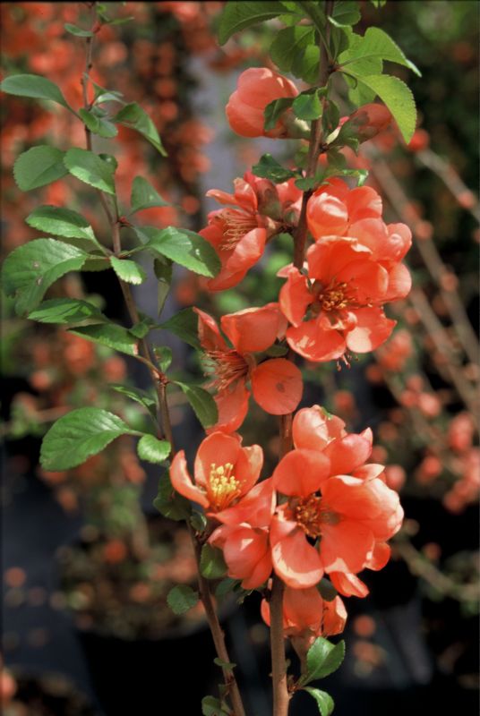 Ebenfalls nahrhaft für Biene und Mensch ist Chaenomeles japonica, die niedrige Zierquitte. Ihre leuchtend ziegelrot gefärbten Blüten entwickeln sich mit den ersten Blättern im Frühling. Die Pflanzen können über drei Wochen in Blüte stehen. Die Früchte reifen ab September und werden bis zu 5 Zentimeter groß. Sie leuchten sattgelb, duften intensiv und sind hocharomatisch. Zwar eignen sie sich nicht zum Rohverzehr, aber ähnlich wie die Echte Quitte (Cydonia oblonga) besitzen Zierquitten einen hohen Pektingehalt umd man kann sie gut zu Gelee verarbeiten.