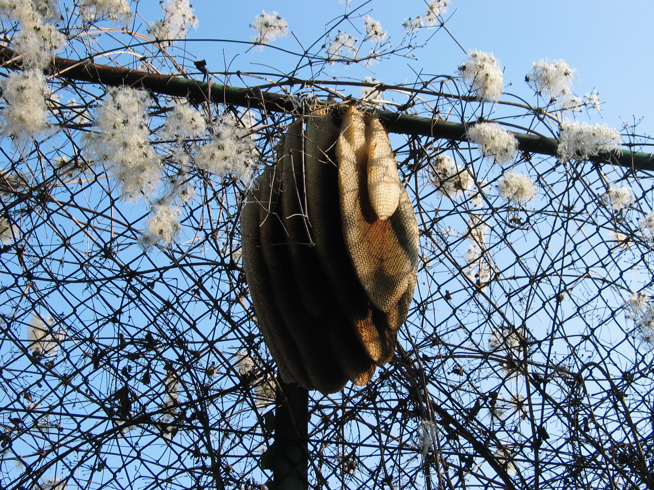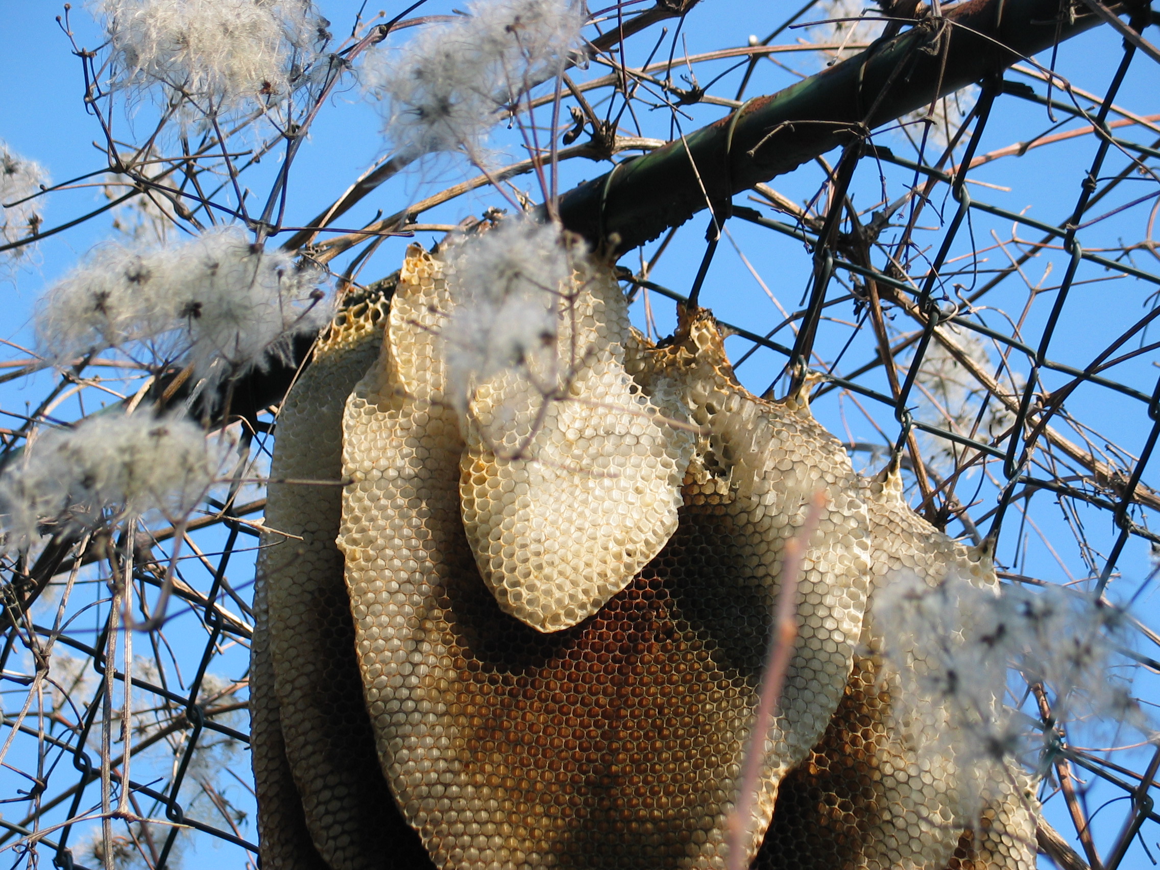 Aber ich meine mich dunkel erinnern zu können, dass die Waben (als ich das verlassene Nest entfernt habe) erst einmal waagerecht angeordnet und wenn ich mich noch recht entsinne, nicht aus Wachs waren...