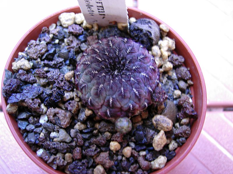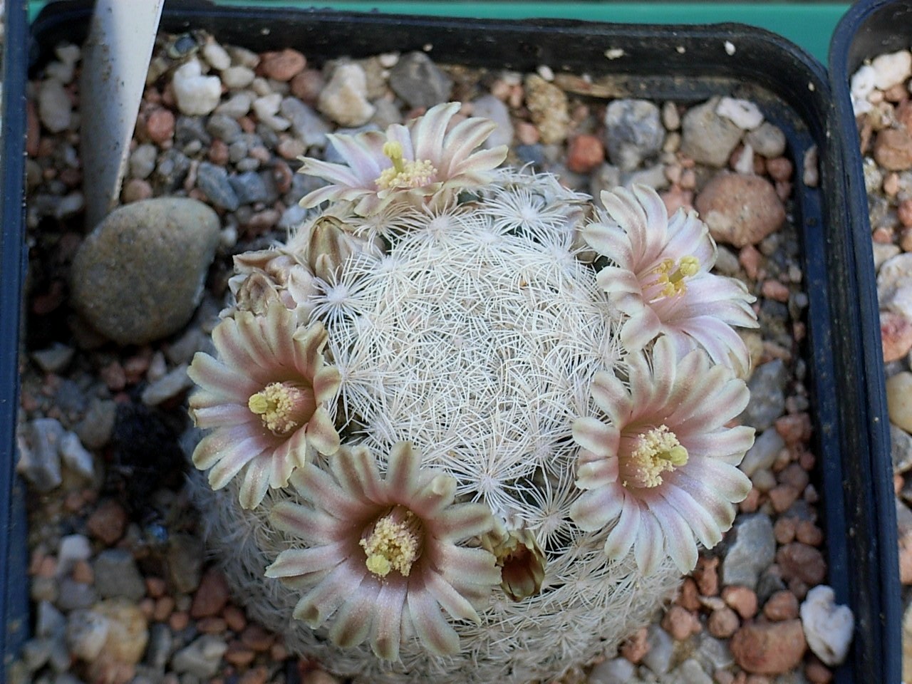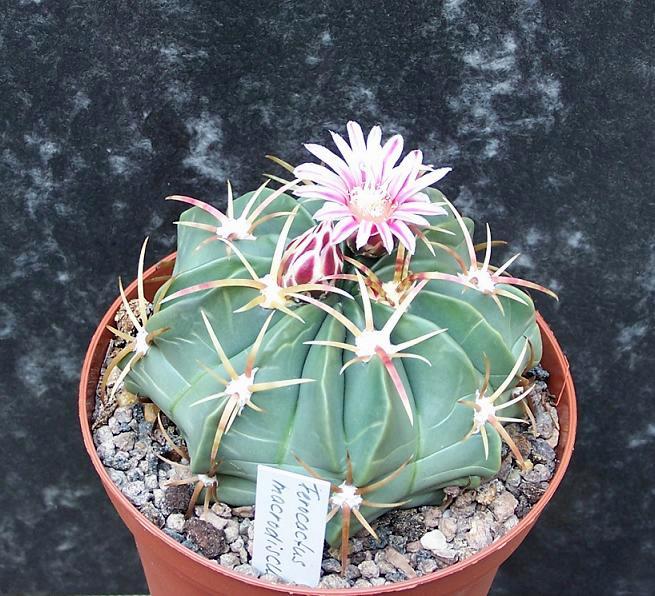 Ein heute aufgeblühter Ferocactus macrodiscus aus der Ausaat von 2000