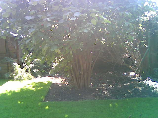 Der Garten liegt nach Südosten, aber durch zwei Mauern nach Süden und Osten und die Hasel ist hier so gut wie immer Schatten.