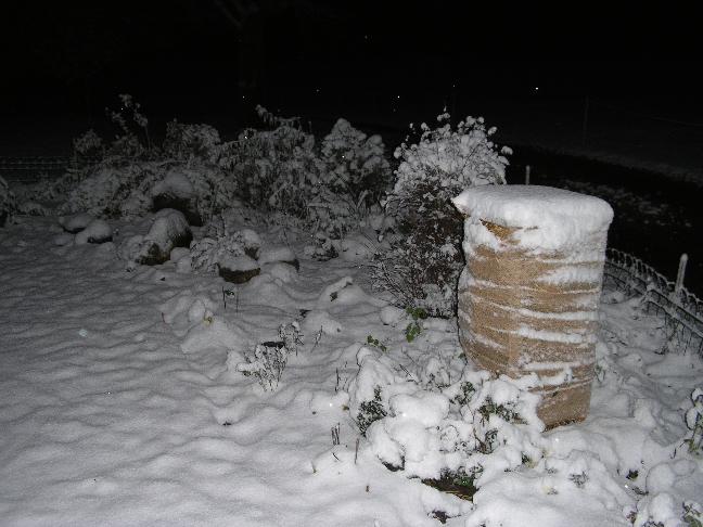 einzig meine chin. blauglockenbäume, die ja kein inhaus-asyl mehr bekommen haben und jetzt im ersten jahr schon draußen überwintern sollen, haben einen winterschutz bekommen. der rest muss - wie gesagt - damit zurecht kommen, irgendwie........... mulchschicht gab's noch für die zwerggranatäpfel und die karamellbeeren naja und so die im herbst ausgepflanzten teile meiner mom (sind aber sowieso alles winterfeste) und die osage-orangen........