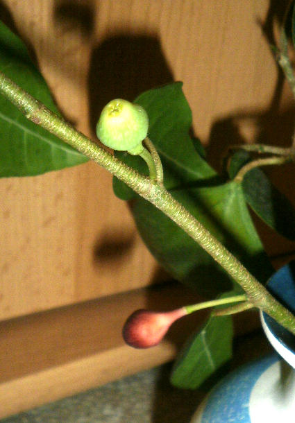 heute habe ich von einer Kollegin folgende Zweiglein bekommen. In dem Blumentopf hat die Pflanze 2 verschiedenartige Blattformen. Sie trägt Früchte.