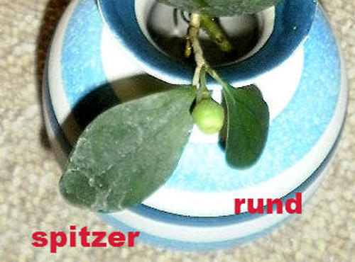 heute habe ich von einer Kollegin folgende Zweiglein bekommen. In dem Blumentopf hat die Pflanze 2 verschiedenartige Blattformen. Sie trägt Früchte.