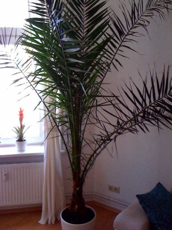 Ich muss dazusagen dass ich sie 3 Stunden waagerecht im PKW von meinen Eltern zu mir nach Kiel transpartiert habe, bei einer hoche von 2,5 m eine Tortur für Palme und mich!