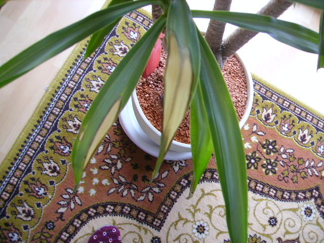 Mein Problem mit der Palme fängt schon wieder an. Die unteren Blätter werden gelber.
