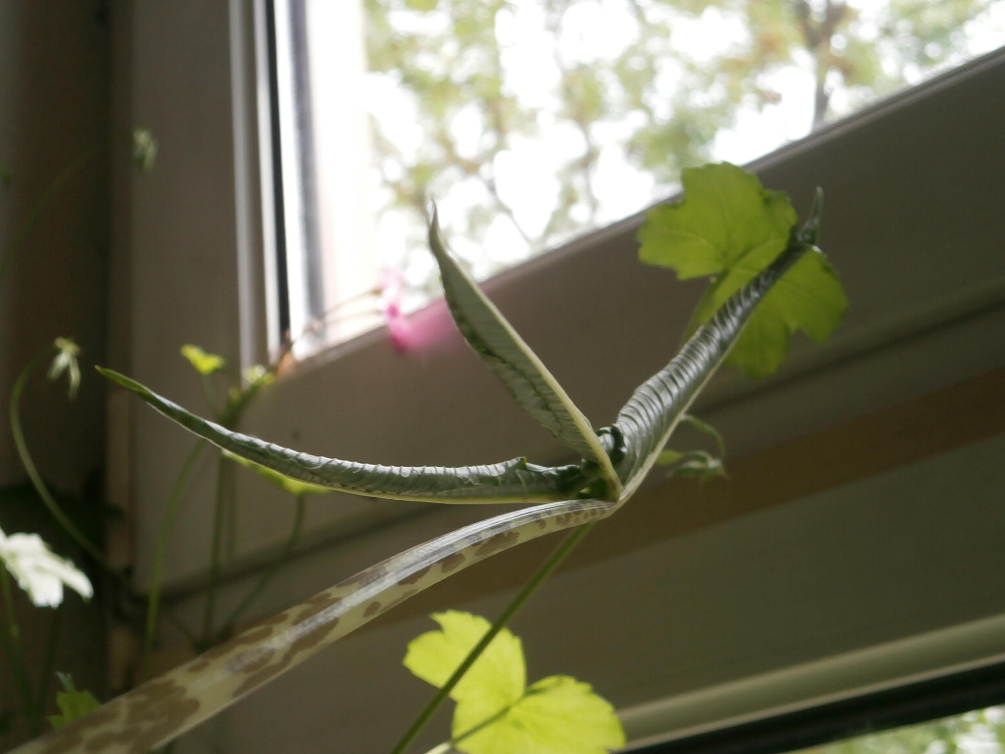 Aus diesen unbekannten Knollen kamen diese schönen Pflanzen. Ich tippe auf amorphophallus, sauromatum, arisaema oder so. Hab versucht sie zu bestimmen. Weiss jemand die genaue Art? Vielen Dank
