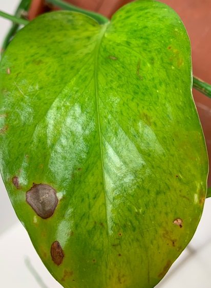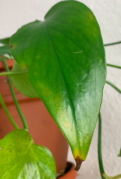 Die pflanze ist ca. 2 Jahre alt steht an einem hellen Standort am Fenster und hat immer die selbe Temperatur. Direkte Sonne hat sie keine. Ich gieße sie immer dann, wenn das Substrat oben ausgetrocknet ist. Also eher zu wenig als zuviel. Düngen tu ich ungefähr einmal im Monat. Außerdem besprühe ich sie täglich mit Wasser. Auf den Bildern sieht man die braunen flecken, das waren schaden der thripse die waren davor schon da.