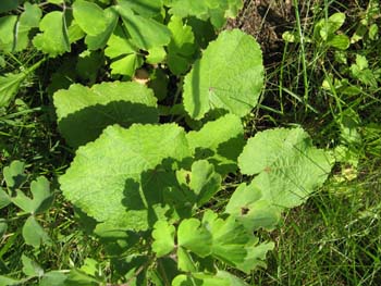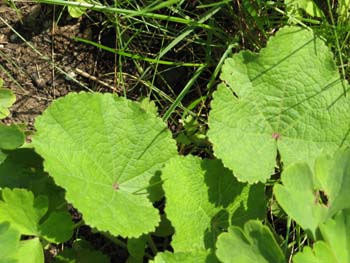 Zu welcher Pflanze gehören diese Blätter? Ich weiß, die einen gehören zur Akelei, bei den runden bin ich mir nicht sicher.