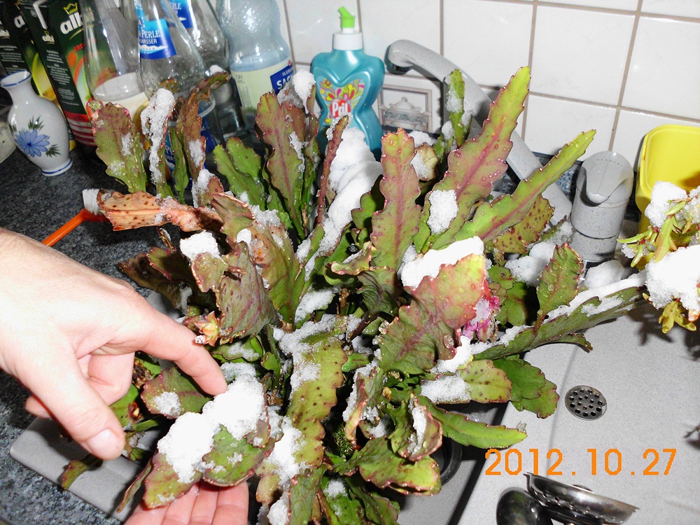 Gestern hab ich nun, für's Wochenende sind Nachtfröste angesagt, alles eingeräumt und in's Winterquartier verfrachtet. Meine Kakteen sind trocken in den kühlen, nicht besonders hellen Keller gewandert.