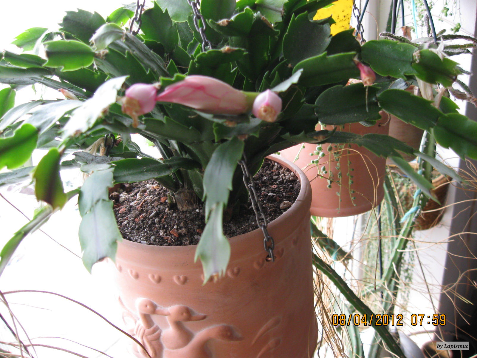 Super sieht der aus Peg01, den Steckling mit den Kratzern auf dem Blatt erkenne ich sofort: Klick, eine Disocactus-Hybride, ESA-Reg.Nr. 12602, zumindest wenn ich damals beim Kauf selbst nicht übers Ohr gehauen wurde