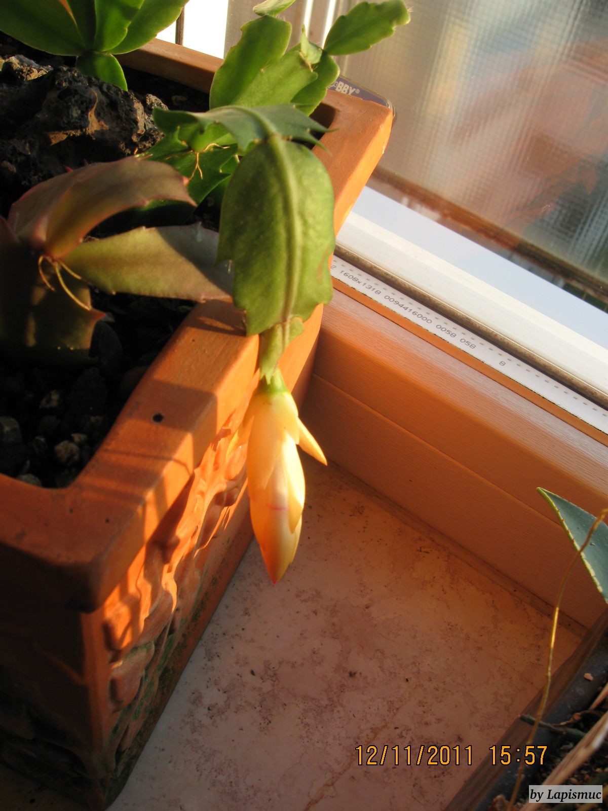 Naja, bei mir kommt grad die erste Blüte: weiss mit rosa Rand und ich bin etwas genervt über diese Sh...tkamera.
