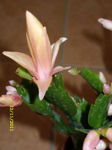 Naja, bei mir kommt grad die erste Blüte: weiss mit rosa Rand ....