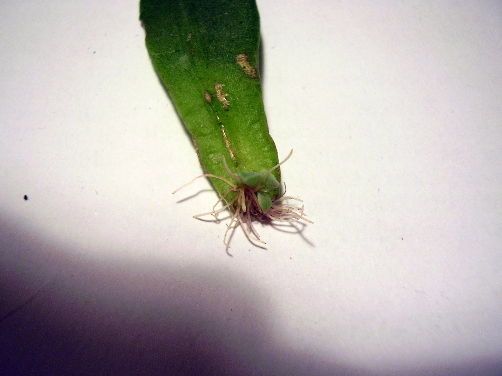 3. aus dieser "Narbe" entstehen nach ein paar Wochen entweder zuerst Wurzeln oder neue Blättchen.