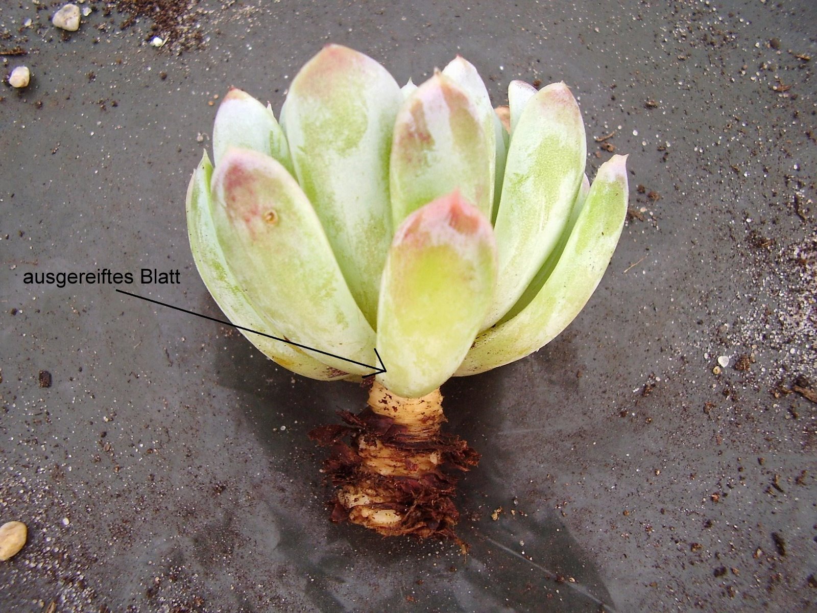 Schwierigkeiten machen vor allem die sehr dichtrosettigen Echeverien. Hier reißt das Blatt gerne an der falschen Stelle, zur Stecklingsentnahme müssen die Pflanzen meist ausgetopft werden.