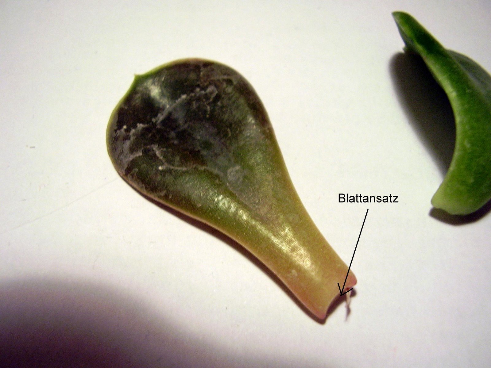3. aus dieser "Narbe" entstehen nach ein paar Wochen entweder zuerst Wurzeln oder neue Blättchen.