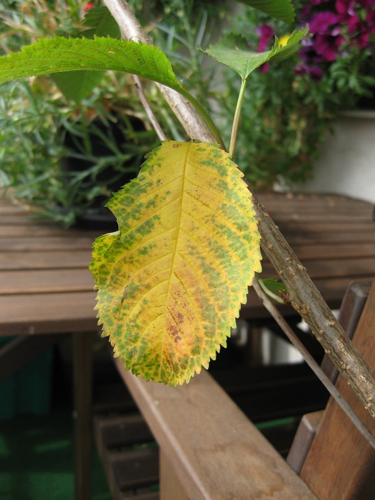 an meinem kleinen Kirschbaum verfärben sich seit einigen tagen die Blätter, siehe Bilder.