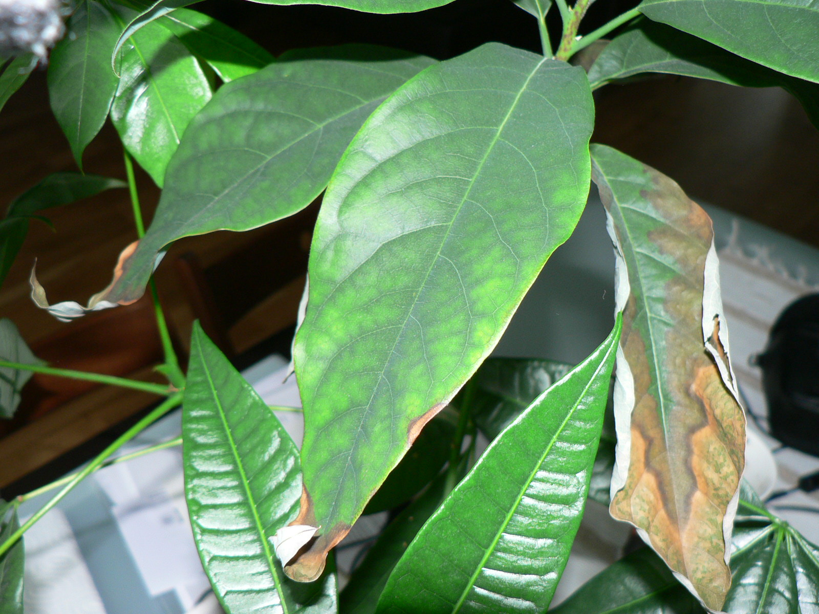 Nun vertrocknen ihre unteren Blätter und verfärben sich braun. Eigentlich giesse ich sie bestens. Und mit den beiden Pachiras versteht sie sich auch super!