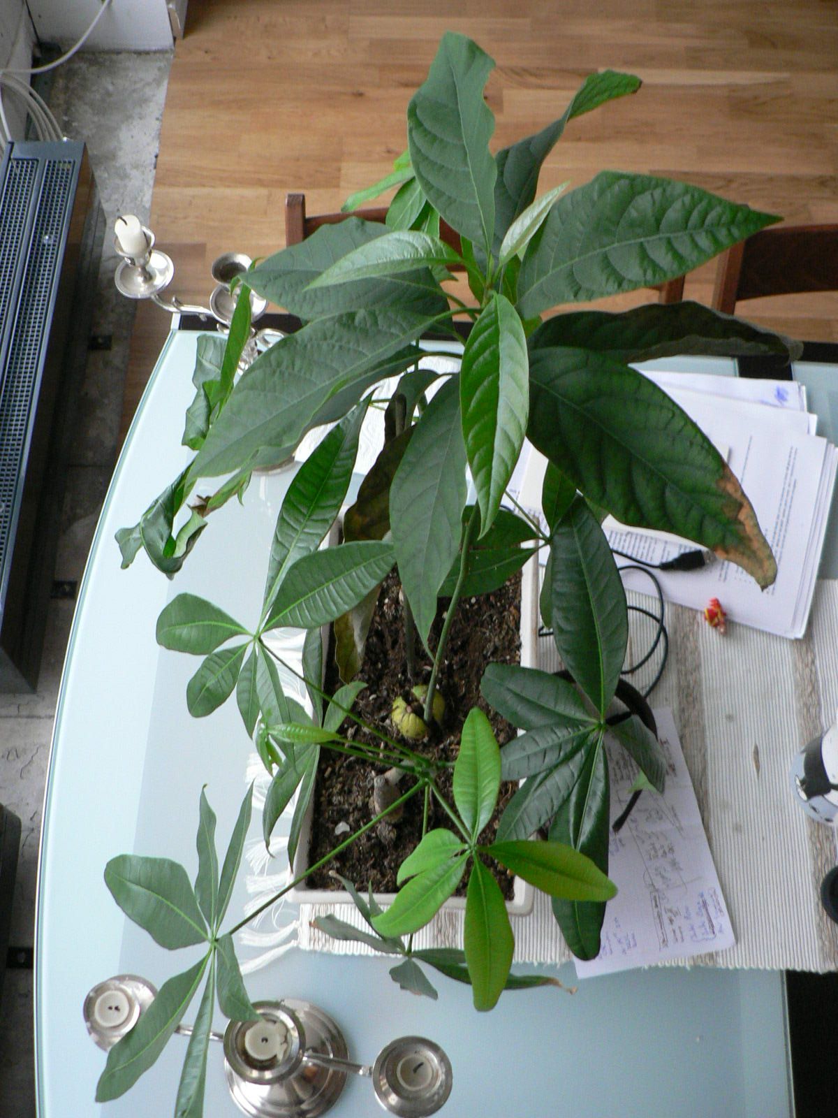 Nun vertrocknen ihre unteren Blätter und verfärben sich braun. Eigentlich giesse ich sie bestens. Und mit den beiden Pachiras versteht sie sich auch super!