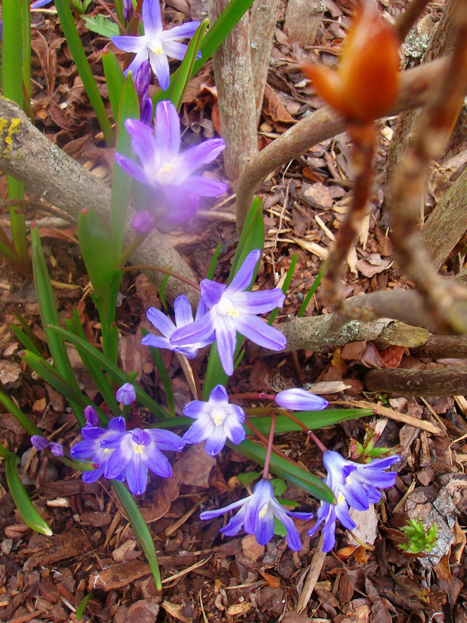 Hier bin ich mir selbst nimmer sicher, ob's Große Sternhyazinthe (Chionodoxa forbesii) oder Schneeglanz (Gewöhnliche Sternhyazinthe - Chionodoxa luciliae) ist ... oder gar ein Hybride