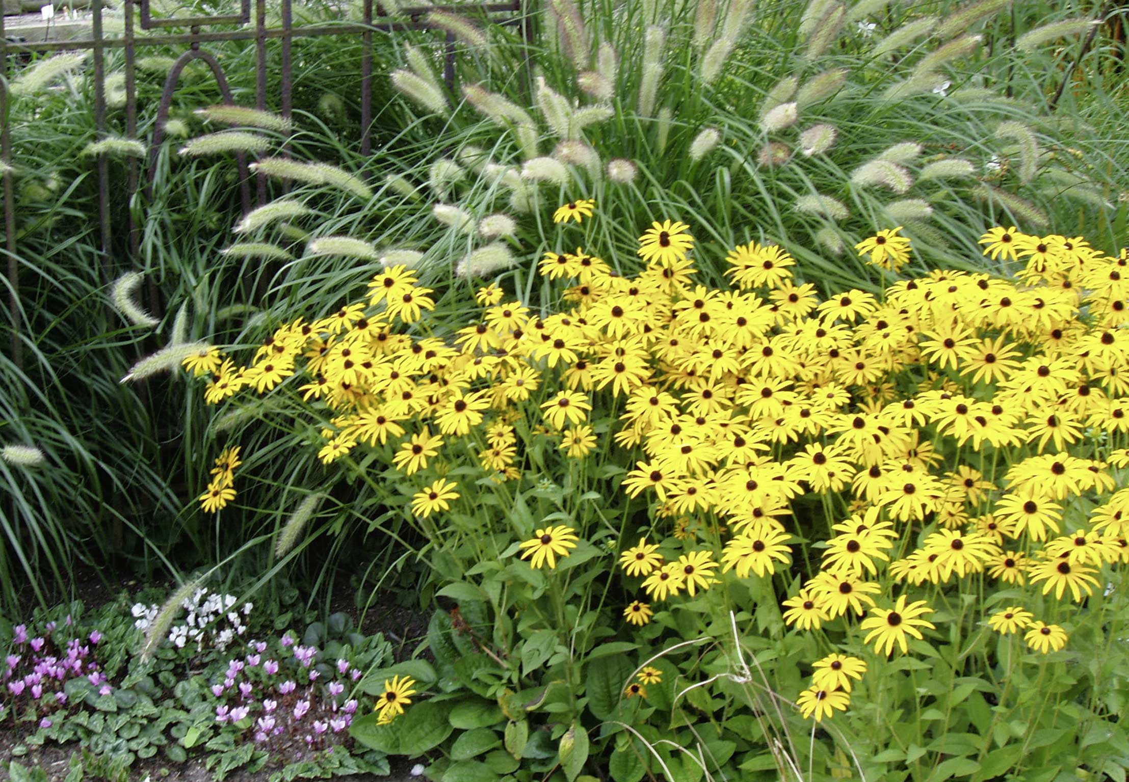 Ein perfekter Partner für Astern ist die Kupfer-Hirse (Panicum). Ein harmonisches Bild ergibt sich, wenn diese beiden Herbstschönheiten nebeneinander im Beet stehen: die kupferroten Blattspitzen der Hirse ragen dann über den Blütenteppich der Astern hinaus und neigen sich elegant zu den Seiten. Ebenso schmückend wirken im Herbst auch das Chinaschilf (Miscanthus) und das Lampenputzergras (Pennisetum) mit ihren eindrucksvollen Blütenständen. Im Beet machen sie sich gut neben den Blütenschirmen der Fetthenne (zum Beispiel Sedum-Hybride ?Herbstfreude?), die sich ab September dunkelrosa öffnen. Wer Gelbtöne bevorzugt, der sollte auf den Sonnenhut (Rudbeckia ?Goldsturm?) setzen. Diese goldgelbe Staude blüht im Spätsommer wochenlang und passt schön zur gelben Herbstfärbung vieler Gräser.