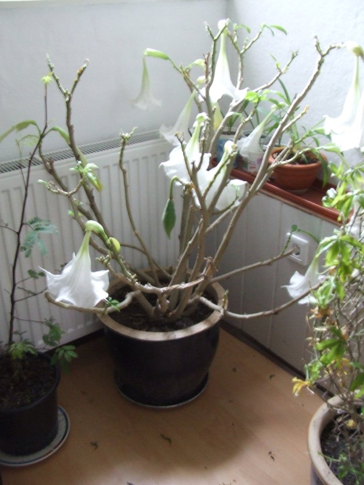 hatte schon mal jemand dieses "phänomen": meine datura blüht im winterquartier und das auch noch massiv, also nicht bloss eine, vergessene blüte........