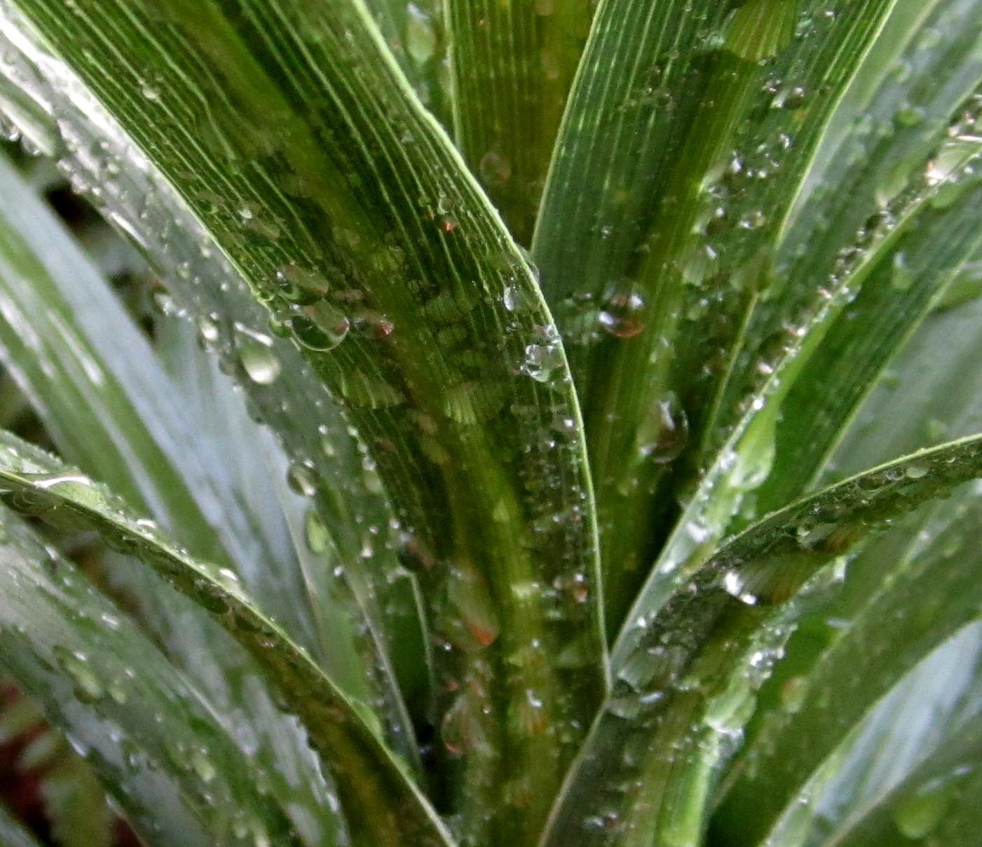 An den oberen Tropfen siehst Du auch wie schön rund sich die Tropfen auf den Blättern gehalten haben.