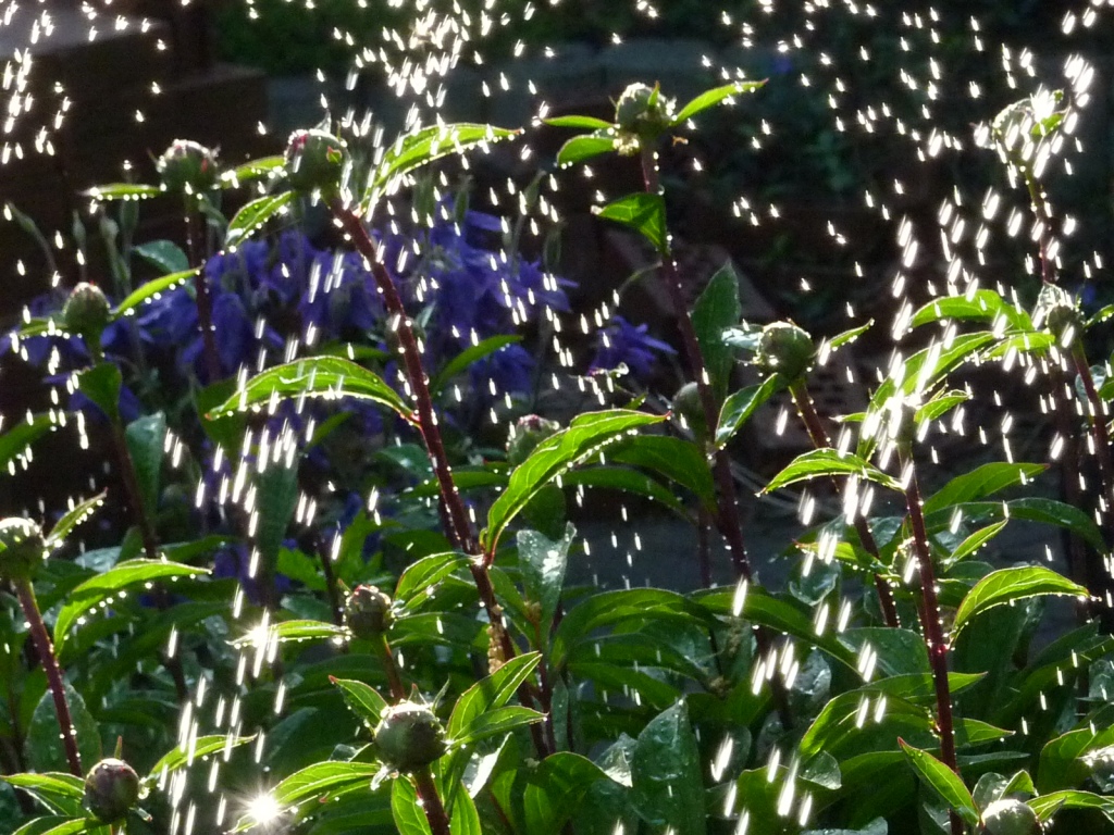 An den oberen Tropfen siehst Du auch wie schön rund sich die Tropfen auf den Blättern gehalten haben.