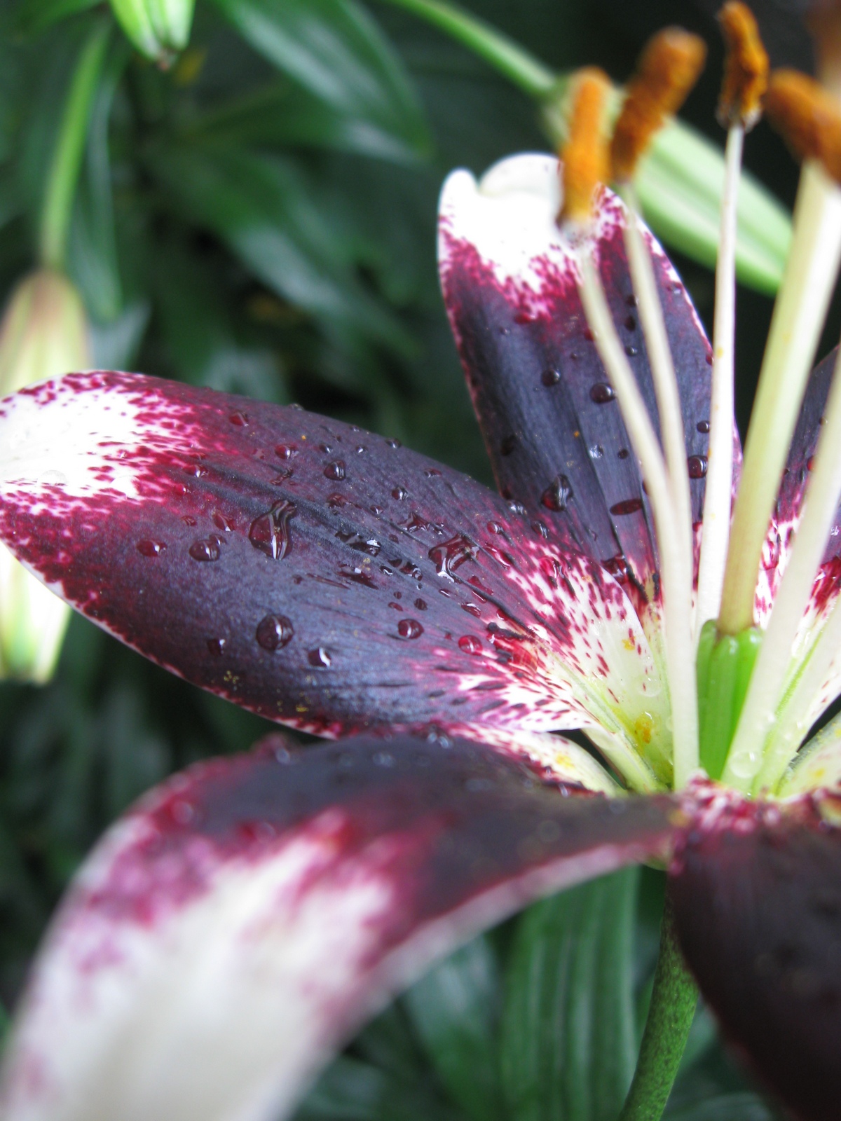 Weil es hier den ganzen Tag schon wie aus Kübeln schüttet, konnte ich meine Taglilien-Lieblinge mit Tropfen fotografieren. Mit Sonnenschein leuchten die Farben zwar besser, aber mit den Regentropfen schauen sie auch ganz hübsch aus.