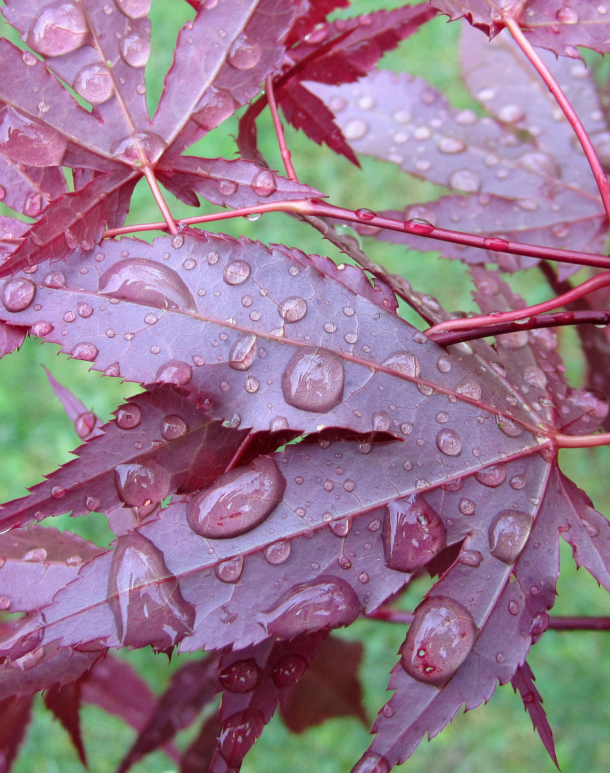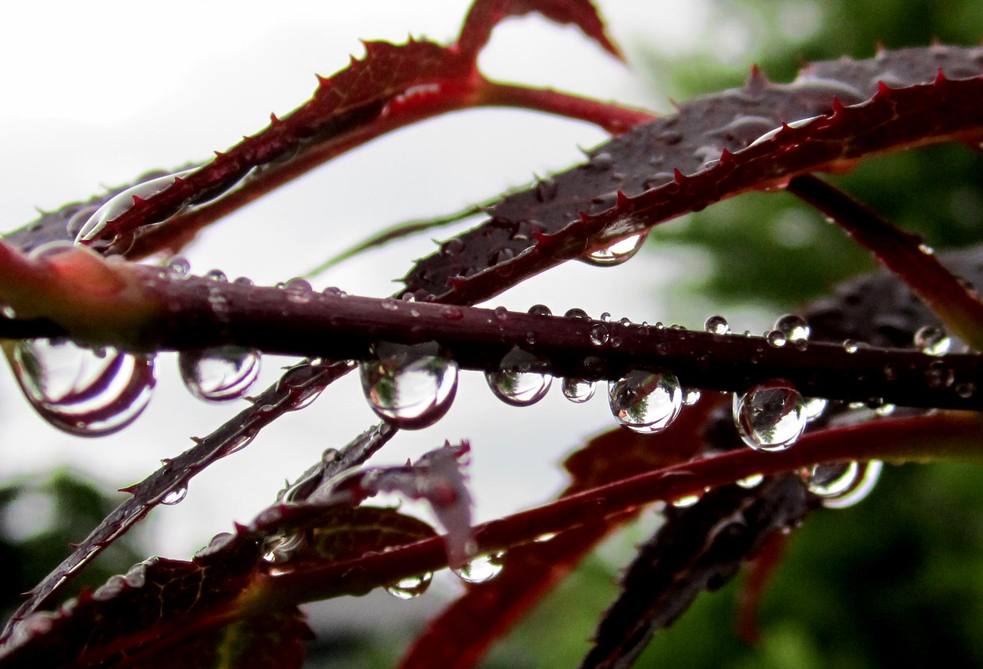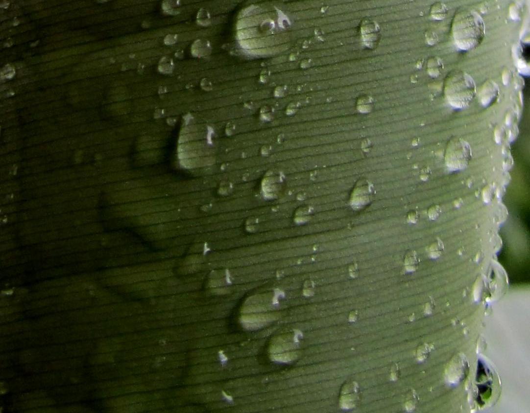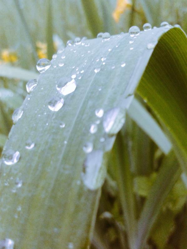 An den oberen Tropfen siehst Du auch wie schön rund sich die Tropfen auf den Blättern gehalten haben.
