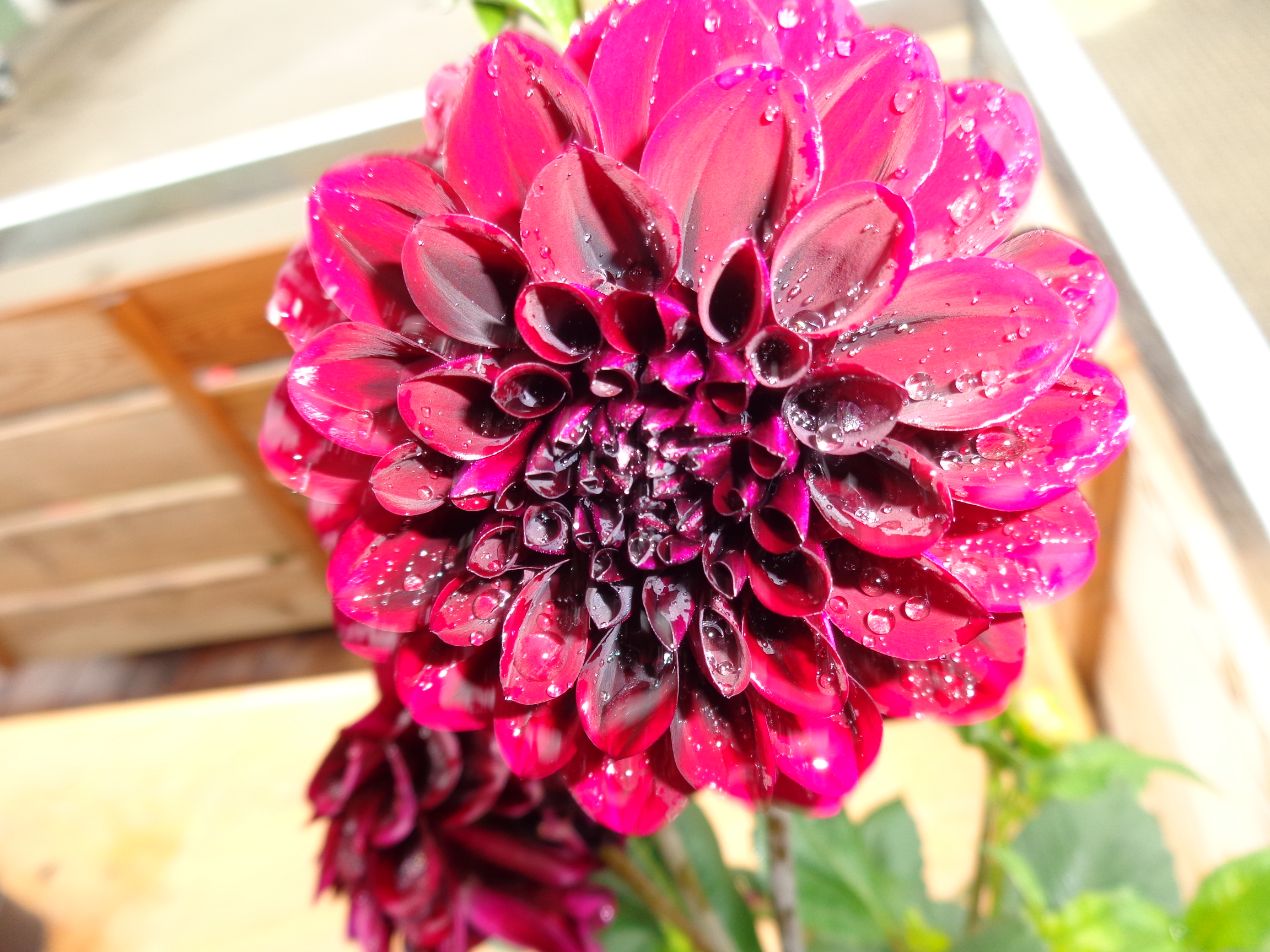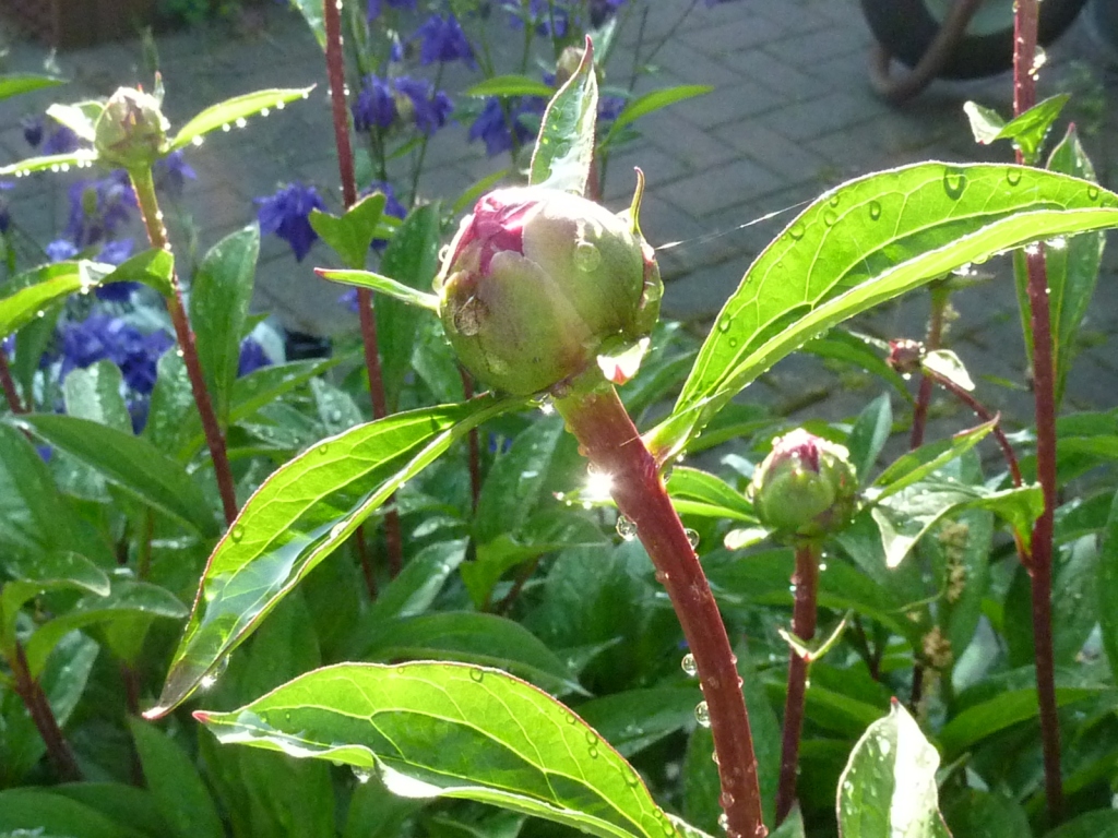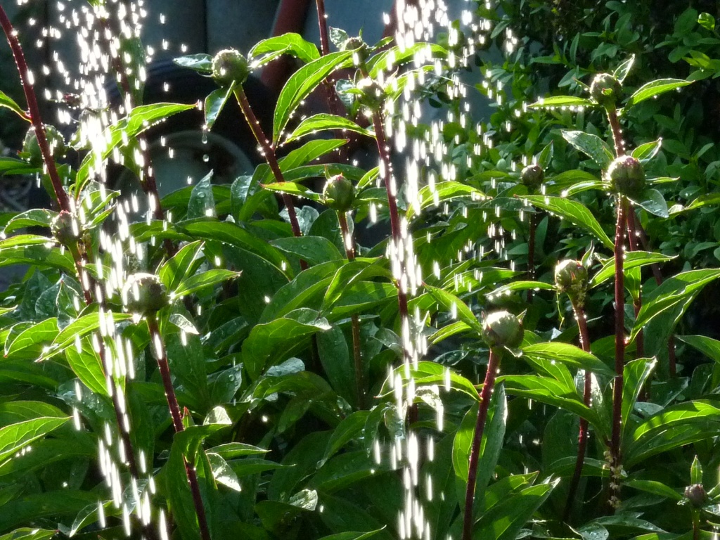 An den oberen Tropfen siehst Du auch wie schön rund sich die Tropfen auf den Blättern gehalten haben.