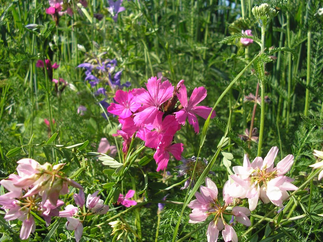 Ansonsten sind auch Veilchen, Ehrenpreis, Schafgarbe, Löwenzahn, Hahnenfuß, Klee, Scharbockskraut, Gundelrebe und das Buschwindröschen Blumen die sich im Rasen gerne von selber mit der Zeit ansiedeln, wenn man sie lässt.
