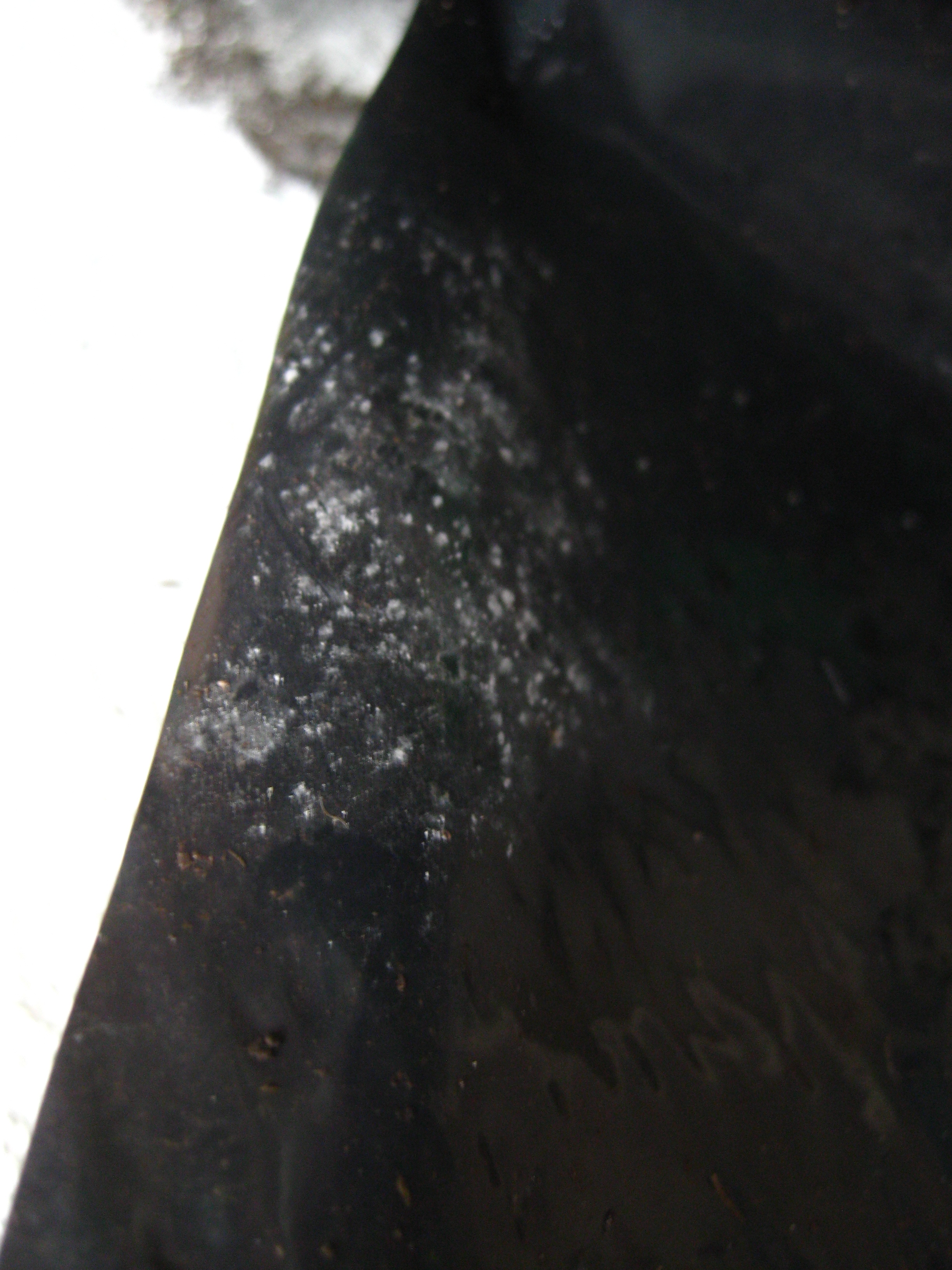 Oben auf gibt es ein paar Stellen an denen weiße Flecken zu sehen sind. Bin mir nicht 100%ig sicher, dass es Schimmel ist, aber denke mal schon.