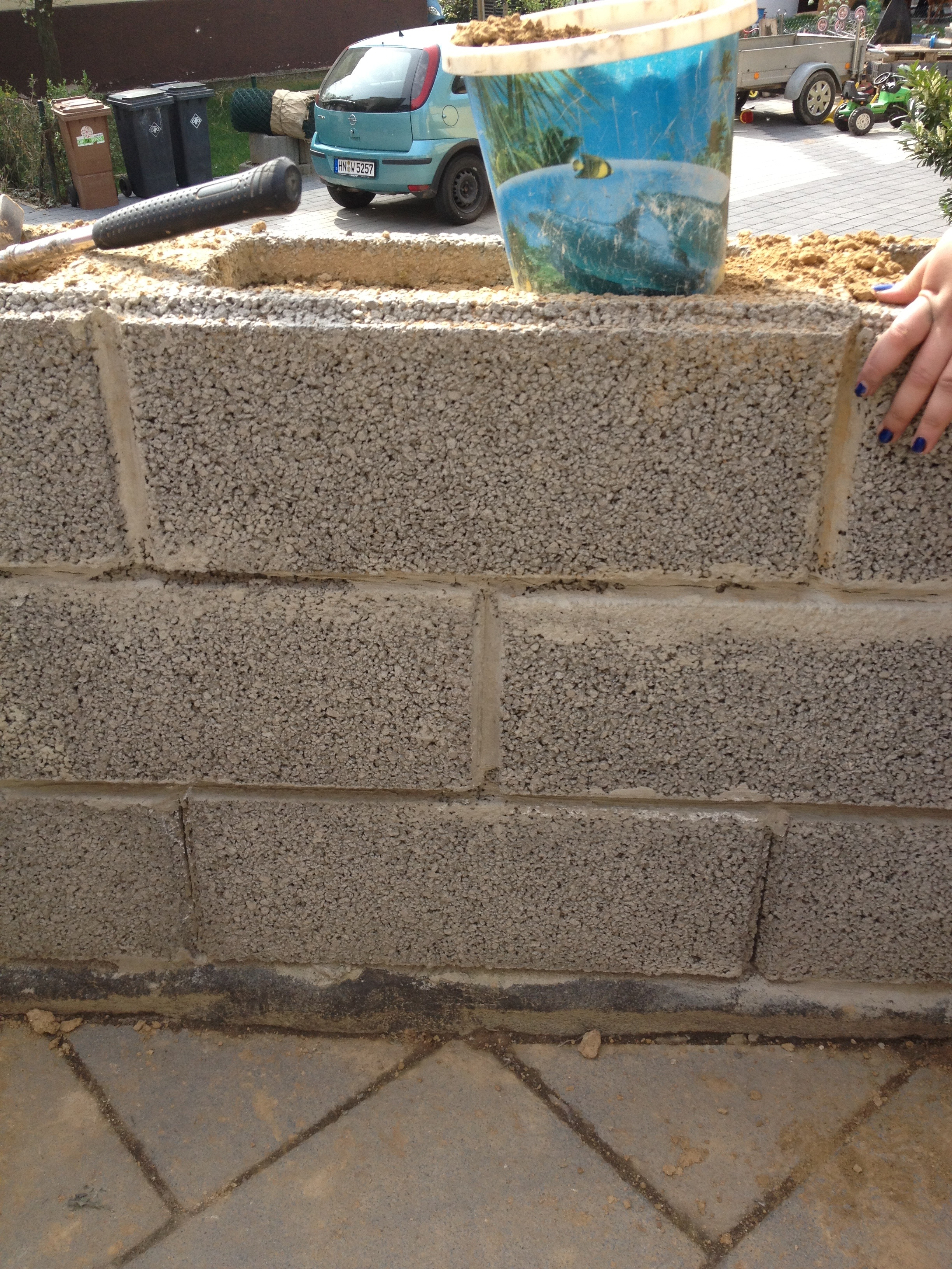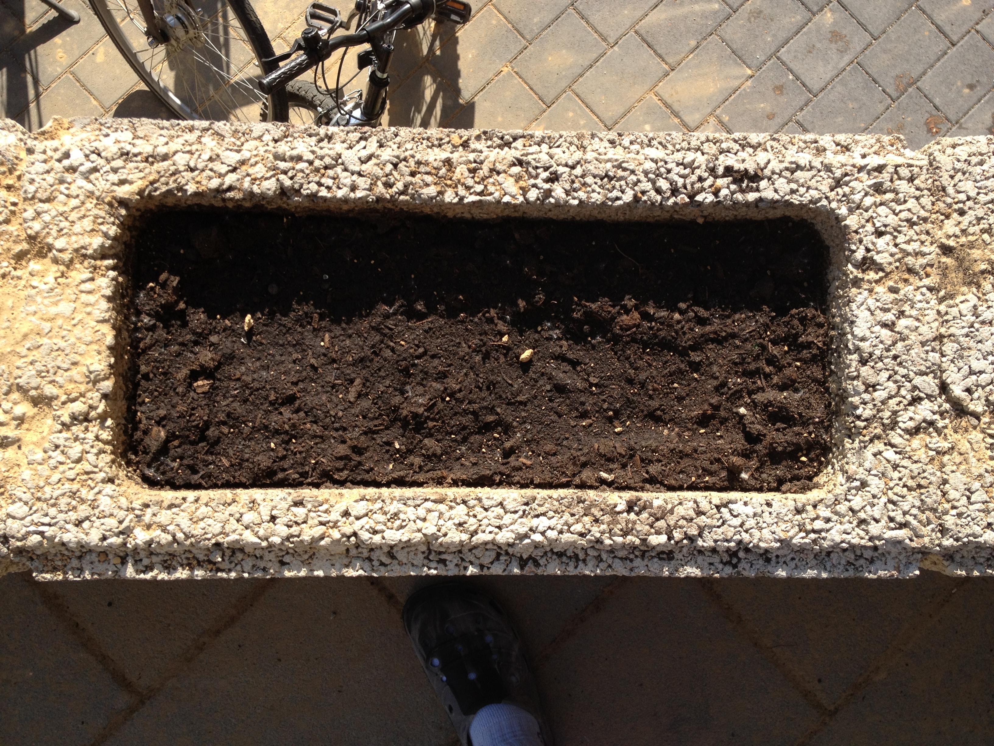 Also auf der Terrasse haben wir etwa 30 längliche Kübel die mit so einer art beton und Lehmerde aufgefüllt waren.