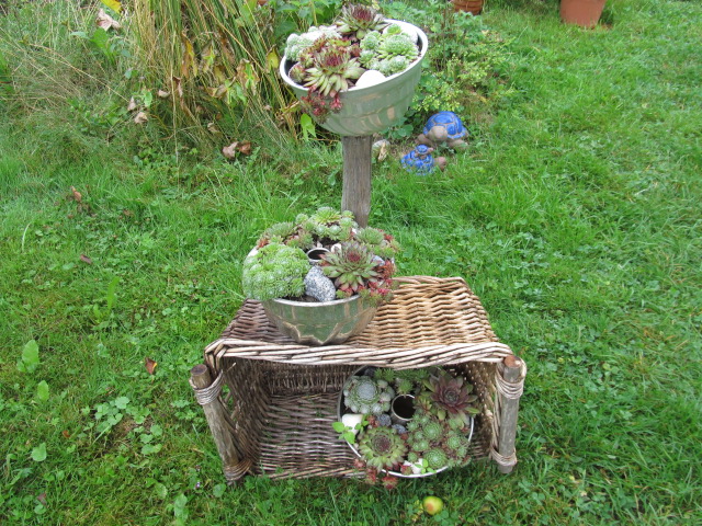 Zwei hab ich schon fertig, mit zwei weiteren werd ich erst nochmal leckere Betonkuchen backen, bevor sie dann ebenfalls mit Sempervivum bepflanzt werden.