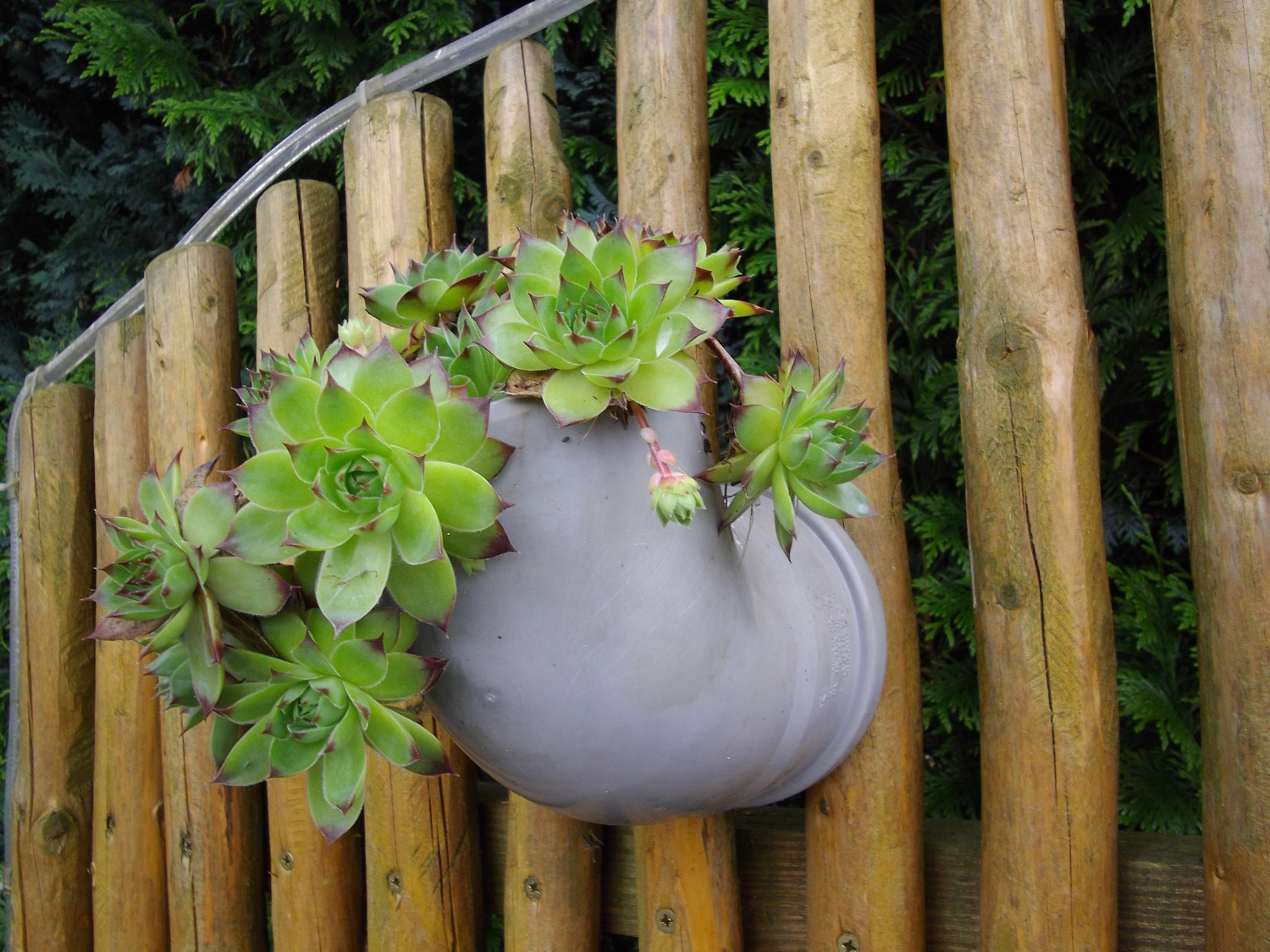 Was ich mich immer frage: diese Küchengefäße mit Sempervivum bepflanzt haben doch kein Abzugsloch. Und sind aus Metall, oft gar nicht so dünnem (z.B. das Fondueset auf der IGA) oder aus Keramik/Steingut etc. Da kann man also auch nicht mal so eben ein Loch reinbohren. Und grad Semperv. und Staunässe... geht gar nicht.