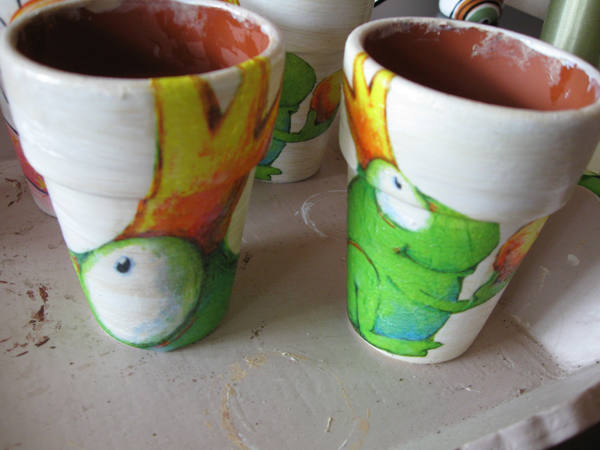 Nach kurzem Überlegen hab ich dann meine Acrylfarben, Pinsel und meinen Serviettentechnik-Kram hervorgeholt und hab angefangen rumzuprobieren.