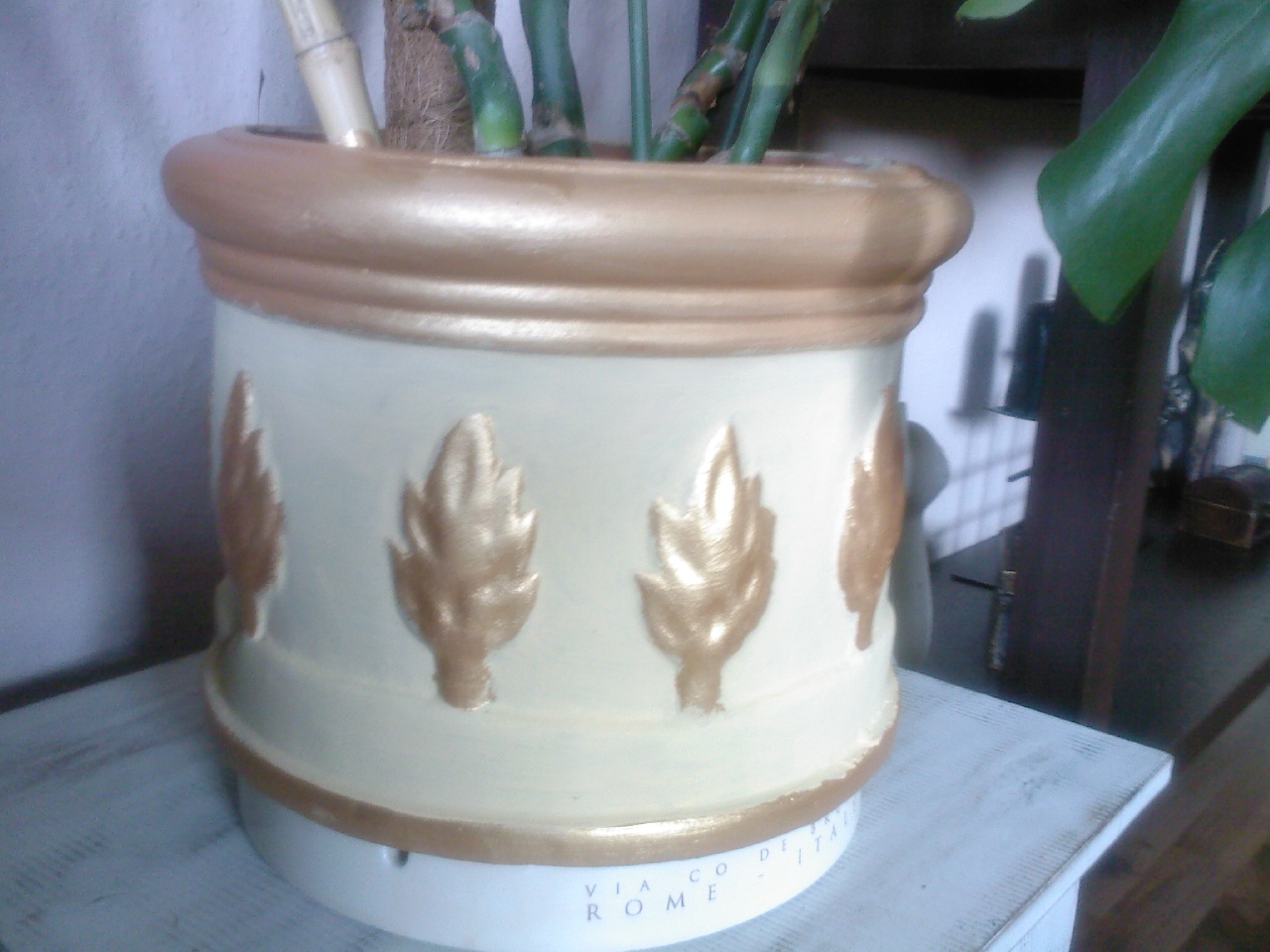 Also wollte ich dem Busch wenigstens mehr Platz bieten und hatte nur noch einen potthässlichen großen blauen Übertopf.