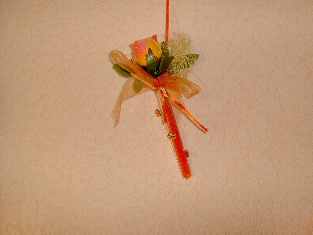 (z.B. Scoubidouband) zusammenschnüren und mit