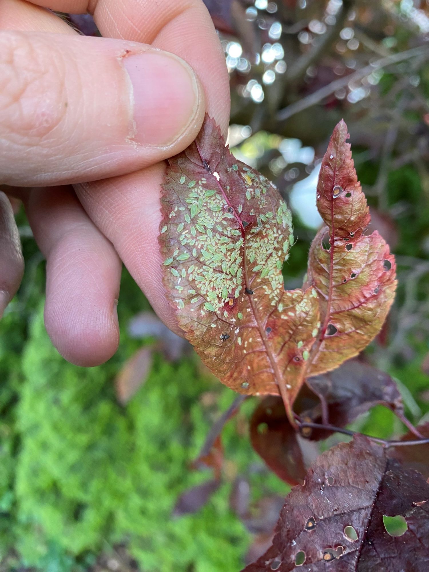 Vereinzelt habe ich auch Nester von Blattläusen gefunden, was in meinen Augen aber kein sehr ausgeprägter Befall ist.