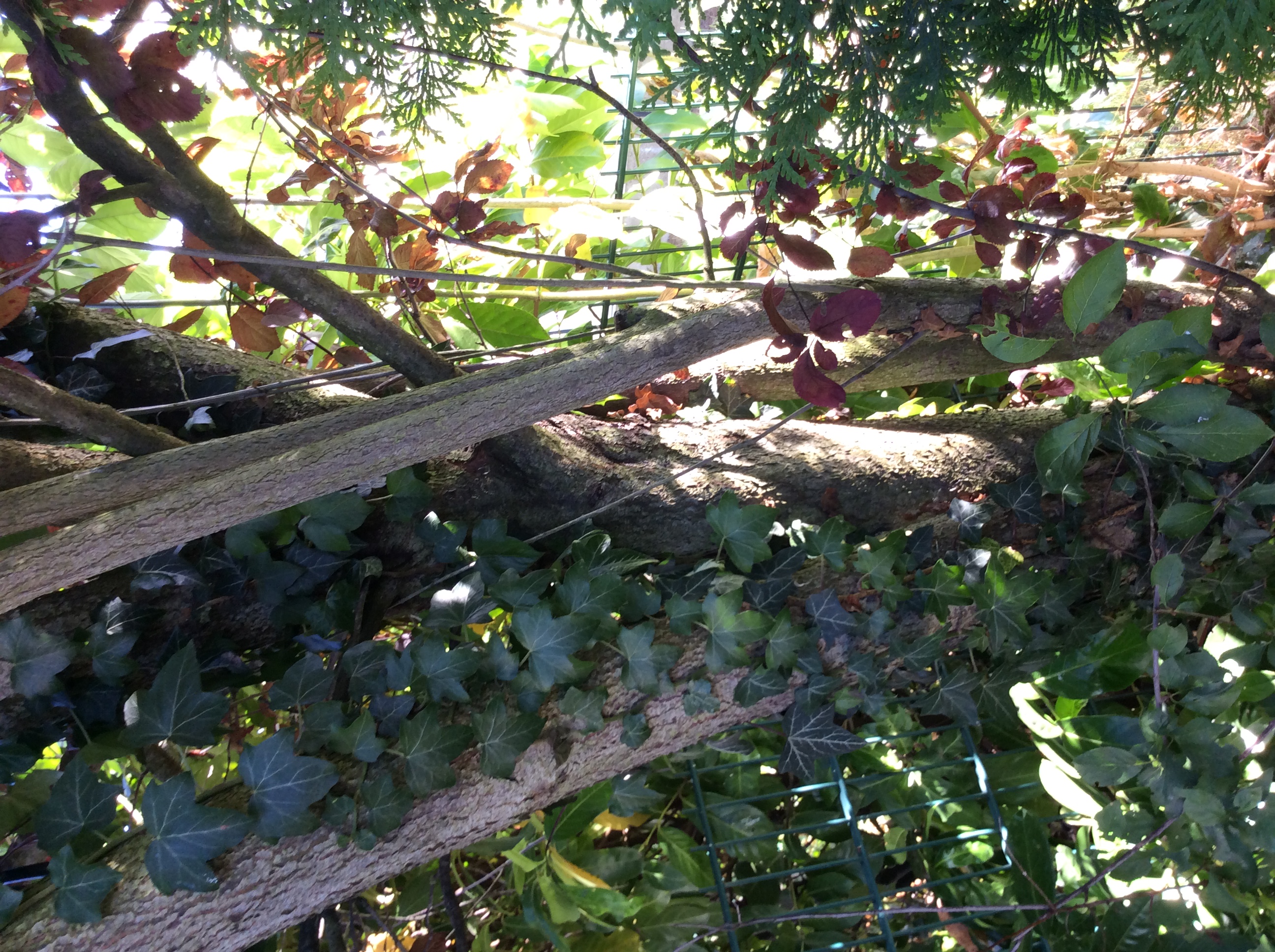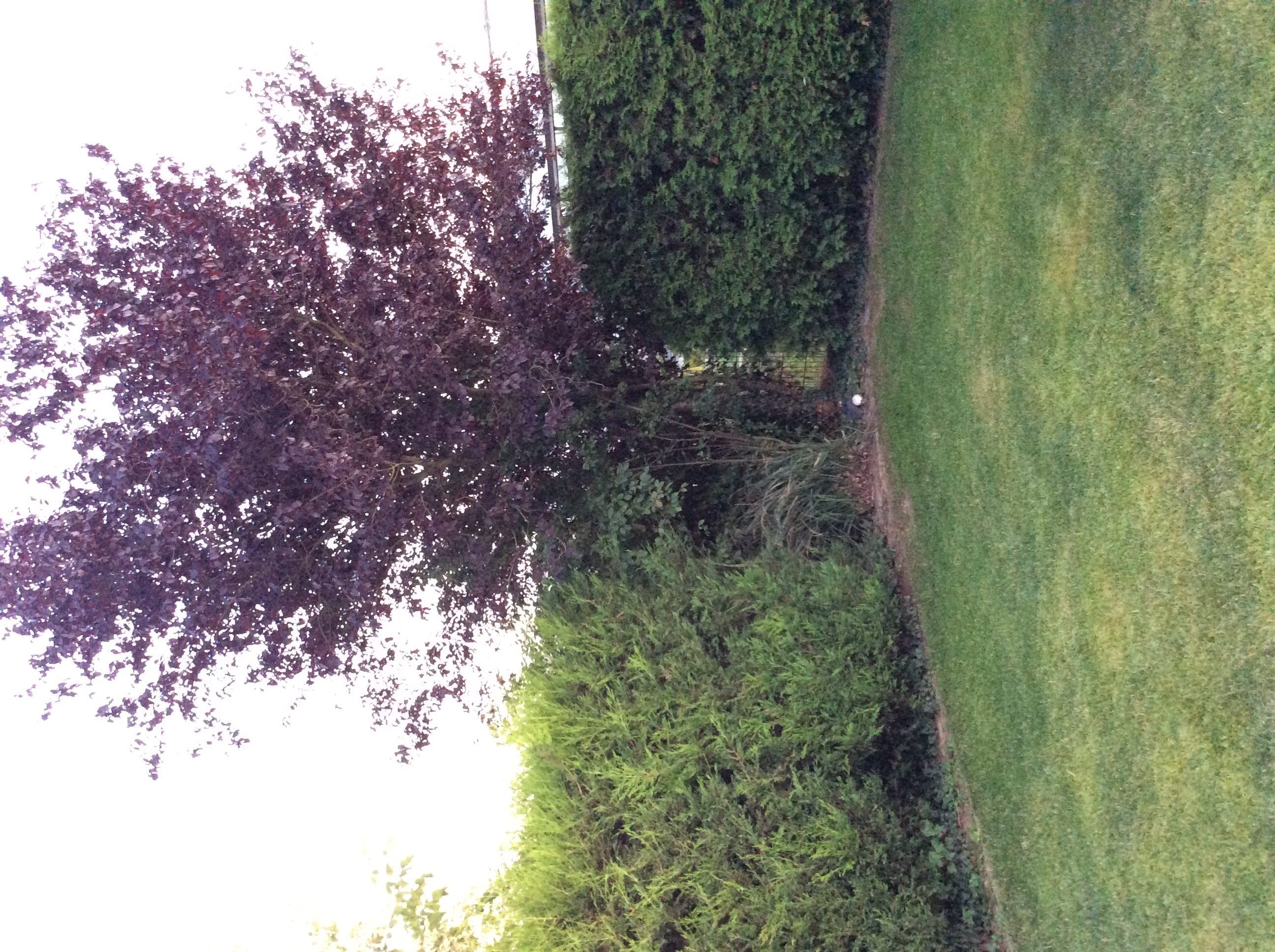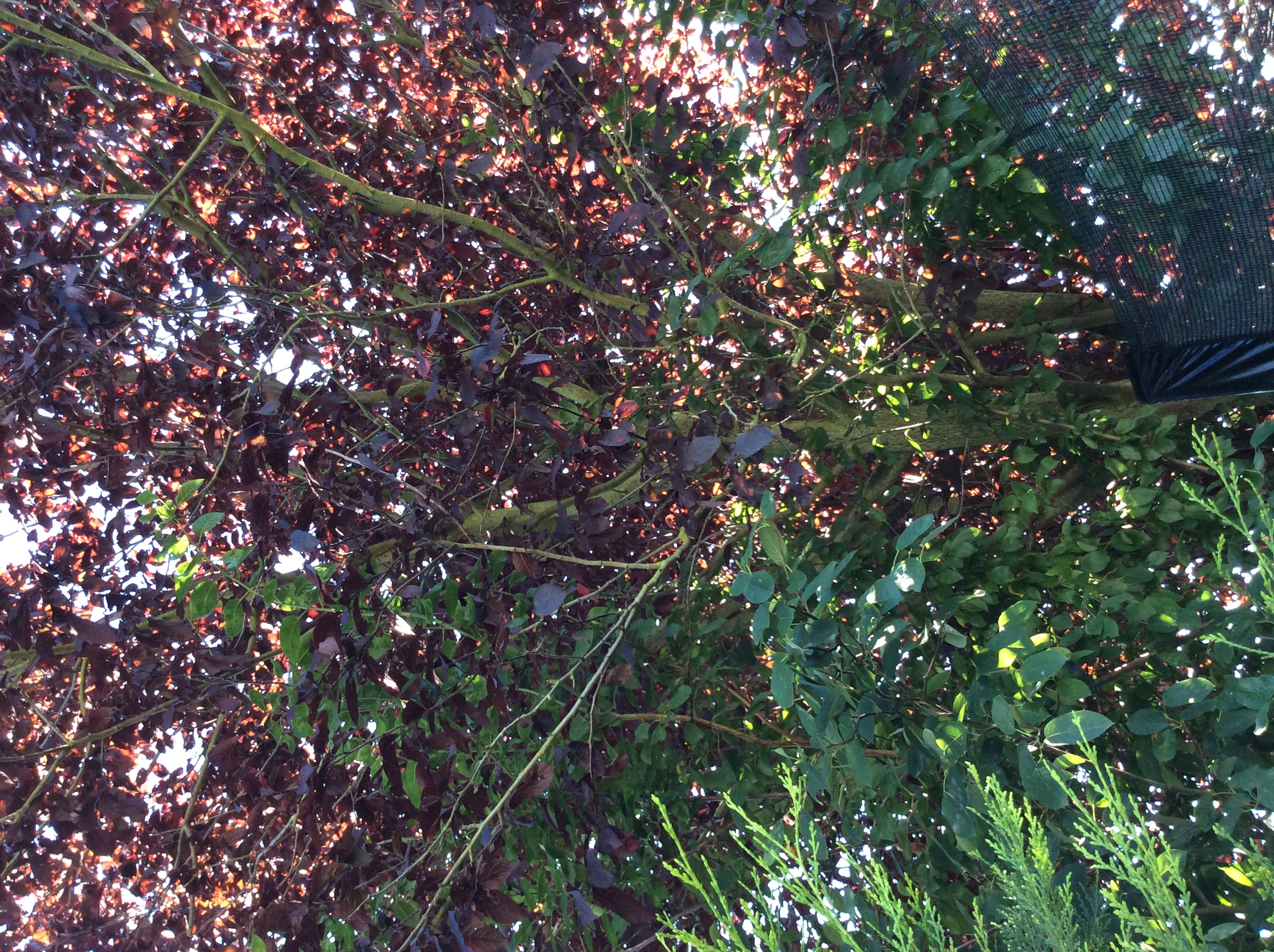 Unsere Blutpflaume wird zu groß. Eigentlich schon seit drei Jahren, aber ich hab’s schneiden immer sein lassen, damit nicht diese Besenform mit den drei Meter Peitschen kommt.