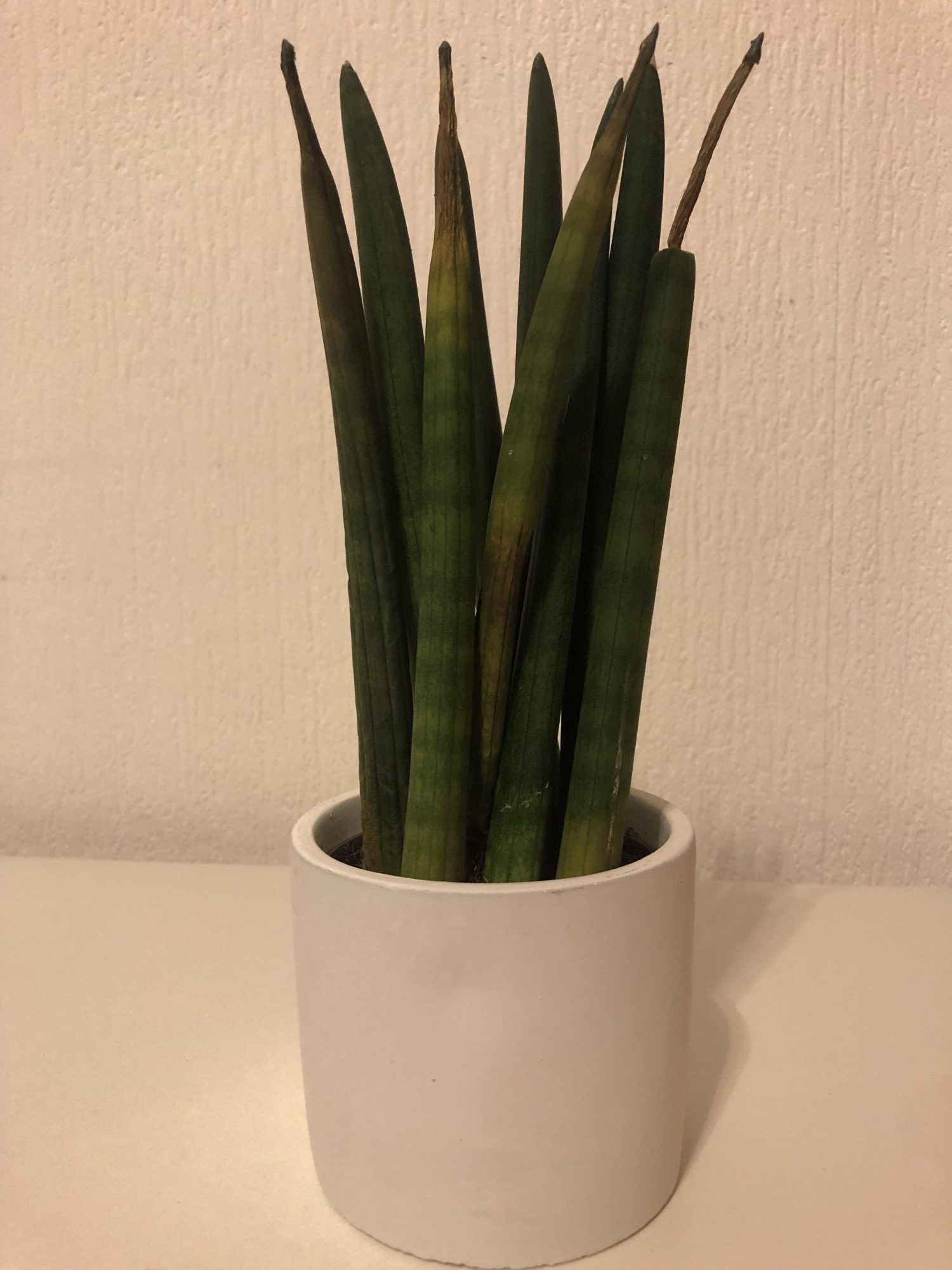Vor ein paar Wochen hatte meine sansevieria cylindrica ein von unten gelblich verfärbtes Blatt und dieses wurde mit der Zeit braun und etwas matschig. Auch ein unangenehmer Geruch kam hinzu. Im Internet las ich von Überwässerung und Wurzelfäule, ich habe sie in Kokoserde umgetopft und dabei das kranke Blatt entfernt.
