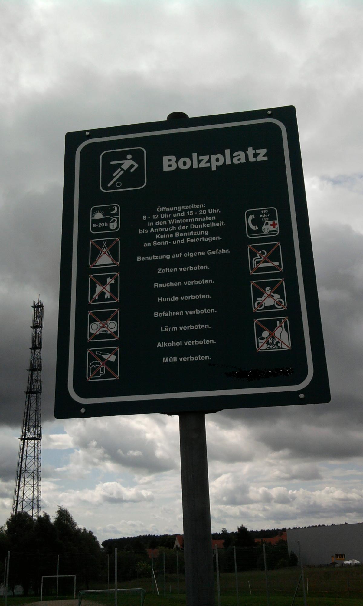 Weiß zwar nicht, ob ich das hier schreiben darf, aber ich dachte, das muß mal gezeigt werden. Hab Zeitungen ausgetragen und an unserem ziemlich neuen Bolzplatz in der Nähe unserer Wohnsiedlung dieses Schild gefunden. Gemischte Gefühle.............................