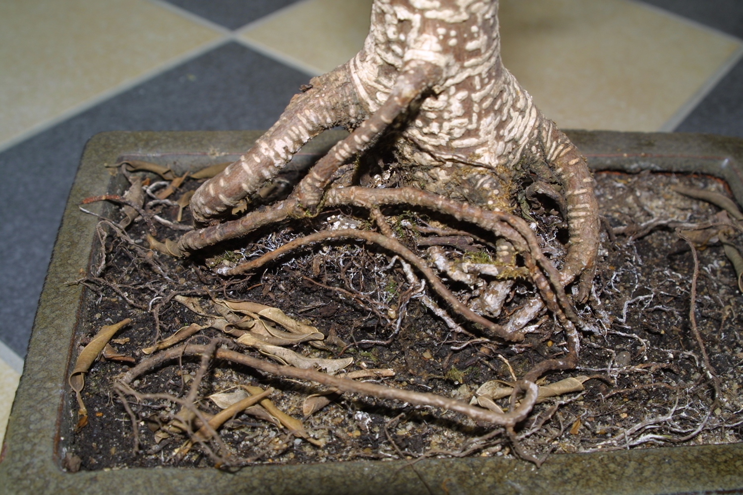 Ich habe diesen Bonsai (ich glaub ein es ist ein Ficus Microcarpa) reduziert aus dem Baummarkt gerettet vor einer Woche. Zu diesem Zeitpunkt hatte er keine Blätter mehr, allerdings ein paar grüne Knospen. Waren auch ziemlich viele schwarze dabei.