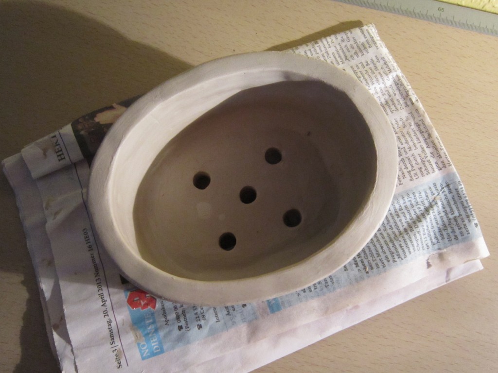 Hier habe ich eine einfache Bonsai schale getöpfert, mit feinen weißen Soft-Ton von „Hobby Time“. Der Ton soll Luft trocknend sein und später auch als Blumentopf tauglich sein ohne den ihn zu brennen !